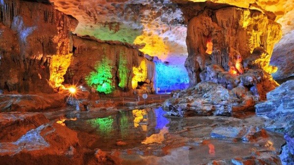 ຄົ້ນຫາຖ້ຳ ໂດຍມີລວງກວ້າງປະມານ 5000 ຕາແມັດ, ຖ້ຳ ເດົ່າໂກ ຕັ້ງຢູ່ຄວາມສູງ 27ມ ເມື່ອທຽບໃສ່ໜ້ານ້ຳທະເລ, ຢູ່ແຫ່ງນີ້ໄດ້ສ້າງຄວາມງາມແບບປະຖົມປະທານ, ຫົກເຫື້ອ. (ພາບ: vietnamnet.vn) ນັກທ່ອງທ່ຽວສາມາດໄປຢ້ຽມຊົມຖ້ຳ ທຽນກຸງ ແລະ ຖ້ຳ ເດົ່າໂກ ໄດ້ຢ່າງງ່າຍດາຍ, ໂດຍຂຶ້ນເຮືອຢູ່ທ່າກ່ຳປັ່ນ ຕ່ວນເຈົາ. |