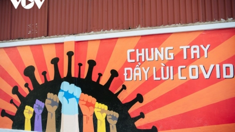 (VOVWORLD) -ບັນດາພາບແຕ້ມໂຄສະນາການປ້ອງກັນ, ຕ້ານໂລກລະບາດໂຄວິດ-19 ໄດ້ແຕ້ມຢູ່ບັນດາຝາເຮືອນໃນຖະໜົນແຫ່ງໜຶ່ງຢູ່ຮ່າໂນ້ຍ ເຊິ່ງພວມດຶງດູດຄວາມສົນໃຈຈາກປະຊາຊົນ.