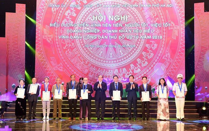 ທ່ານ ຫວໍວັນເຖືອງ ຫົວໜ້າຄະນະໂຄສະນາສຶຳສາສູນກາງ ມອບນາມມະຍົດພົນລະເມືອງດີເດັ່ນ ນະຄອນຫຼວງຮ່າໂນ້ຍ ປີ 2018ໃຫ້ນັກຮົບເກົ່າ ຫງວຽນຕື໋ຮຸ່ງ (ພາບ:vovworld.vn) |