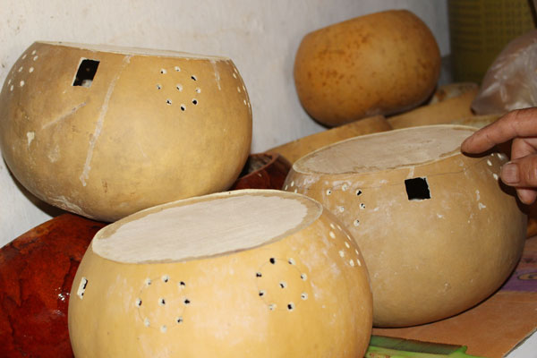 ພາຍຫຼັງຕາກໝາກນ້ຳເຕົ້າແຫ້ງແລ້ວ ກໍນຳມາເຈາະເປັນຮູຢູ່ອ້ອມໜ່ວຍ ເພື່ອສ້າງສຽງໃຫ້ພິນ. ຂະໜາດຂອງຮູທີ່ເຈາະ ກໍຕ້ອງອີງຕາມຂະໜາດໃຫຍ່ ຫຼື ນ້ອຍຂອງໝາກນ້ຳເຕົ້າ.ລຸງ ຮວ່າ ແບ່ງປັນວ່າ: