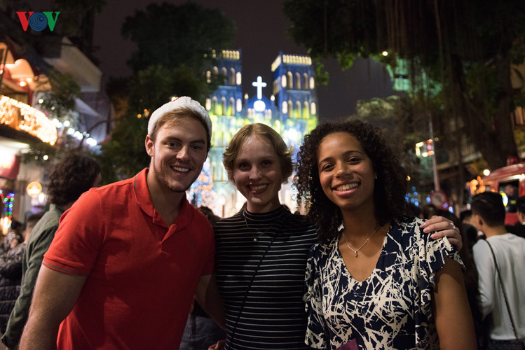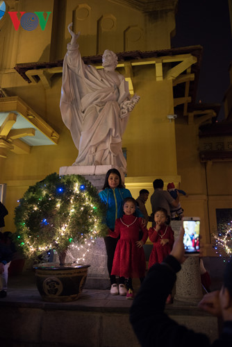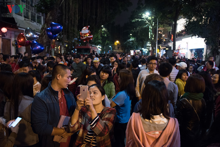 (vovworld) - ​​ເຈືອ​ຈານ​ເຂົ້າ​ກັບ​ບັນດາ​ກາດ​ຕ້ອນຮັບ​ງານ​ບຸນ​ຄິຼດສະມາດ​ໃນ​ທົ່ວ​ປະ​ເທດ, ຄ່ຳ​ຄືນ​ວັນ​ທີ 24/12 ຊາວ​ນະຄອນຫລວງ ຮ່າ​ໂນ້ຍ ​ໄດ້​ພາກັນ​ໄປ​ຍັງບັນດາ​ໂບດ, ສະຖານ​ທີ່ບັນ​ເທິງ​ເພື່ອ​ຕອນ​ຮັບ Noel. ​ໂດຍ​ຕ່າງກັບ​ທຸກ​ປີ​ ປີ​ນີ້​ບໍລິ​ເວນ​ໜອງ ​ໂຮ່​ເກືອ​ມ ​ແລະ ບັນດາ​ໂບດ ພຽງ​ແຕ່​ສະຫງວນ​ໃຫ້​ຄົນ​ຍ່າງ​ໄປ ດັ່ງ​ນັ້ນ ປະຊາຊົນ​ໄດ້​ພາກັນ​ມາ​ຍັງ​ບໍລິ​ເວ​ນນີ້​ເປັນ​ຈຳນວນ​ຫລວງຫລາຍ ສ້າງ​​ເປັນບັນຍາກາດຟົດ​ຟື້ນ​ມ່ວນ​ຊື່ນ.