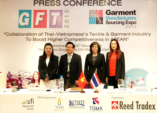 ກອງປະຊຸມຂ່າວກ່ຽວກັບງານວາງສະແດງຂະແໜງອຸດສາຫະກຳຕຳແຜ່ນຕັດຫຍິບ ຈະຖືກດຳເນີນໄປໃນລະຫວ່າງວັນທີ 09 – 12/07/2015, ທີ່ບາງກອກ, ປະເທດໄທ ດ້ວຍຫົວຂໍ້ວ່າ, ຍົກສູງກຳລັງແກ່ງແຍ້ງໃນສະພາບ ເຊື່ອມໂຍງເຂົ້າກັບຕະຫຼາດລວມອາຊຽນ.