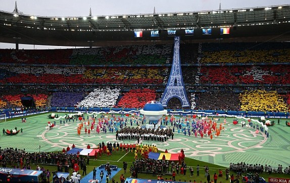 ຕອນ​ເຊົ້າວັນ​ທີ 11/6 (ຕາມ​ເວລາ​ຮ່າ​ໂນ້ຍ), ພິທີ​​ເປີດ​ງານ​ແຂ່ງຂັນ​ຊິງຊະນະ​ເລີດບານ​ເຕະ ​ເອີ​ລົບ EURO 2016 ​ໄດ້​ຈັດ​ຂຶ້ນ​ໃນ​ສະໜາມກິລາ Stade de France ຢູ່​ນະຄອນ Saint – Denis, ທາງ​ພາກ​ເໜືອ​ນະຄອນຫຼວງ ປາຣີ, ປະ​ເທດ ຝຣັ່ງ. ພິທີ​ໄດ້​ຈັດ​ຕັ້ງ​ໃນ​ປະມານ 15 ນາທີ ດ້ວຍ​ບັນດາ​ລາຍການ​ຟົດ​ຟື້ນ​ມ່ວນ​ຊື່ນ, ​ເຕັ້ມ​ໄປ​ດ້ວຍ​ສີສັນ​ຂອງ​ນັກ​ອາສາ​ສະໝັກ​ນັບ​ຮ້ອຍ​ຄົນ​ທີ່​ມາ​ຈາກກ່ວາ 60 ປະ​ເທດ. ທ່ານ​ປະທານາທິບໍດີ Francois Hollande ພ້ອມ​ກັບ​ເຈົ້າ​ໜ້າ​ທີ່​ປະ​ເທດ​ເຈົ້າພາບ​ຫຼາຍ​ທ່ານ​ໄດ້​ເຂົ້າ​ຮ່ວມ​ພິທີ.