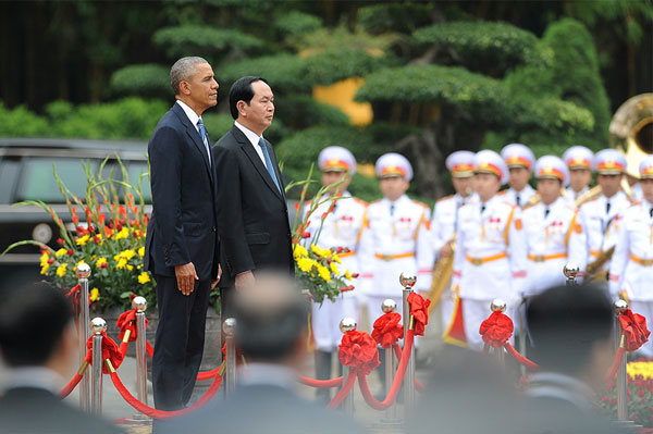 ປະທານາທິບໍດີສະຫະລັດອາເມລິກາ Barak Obama ໄດ້ມາຮອດຮ່າໂນ້ຍ ເລີ່ມຕົ້ນການຢ້ຽມຢາມຫວຽດນາມຢ່າງເປັນທາງການແຕ່ວັນທີ 23-25/5/2016 . ນີ້ແມ່ນການຢ້ຽມຢາມຫວຽດນາມເປັນຄັ້ງທຳອິດຂອງປະທານາທິບໍດີອາເມລິກາ Barak Obama ແລະ ນີ້ແມ່ນການຢ້ຽມຢາມຫວຽດນາມຂອງປະທານາທິບໍດີຄົນທີ່ 3 ຂອງອາເມລິການັບຕັ້ງແຕ່ 2 ປະເທດສ້າງການພົວພັນເປັນປົກກະຕິເມືອ່ປີ 1995. ນີ້ແມ່ນການເຄື່ອນໄຫວພົວພັນຕ່າງປະເທດທີ່ພົ້ນເດັ່ນຂອງຫວຽດນາມໃນປີນີ້. ![]() |