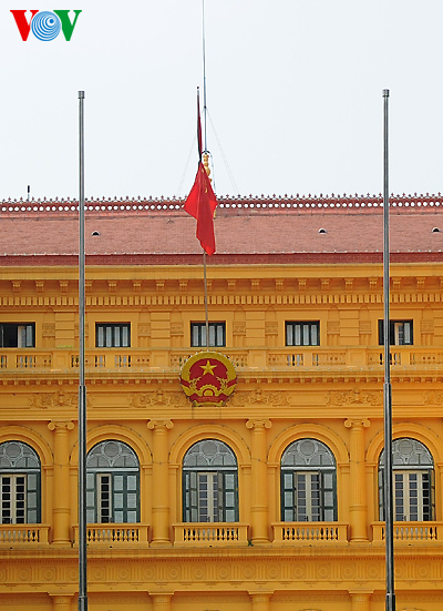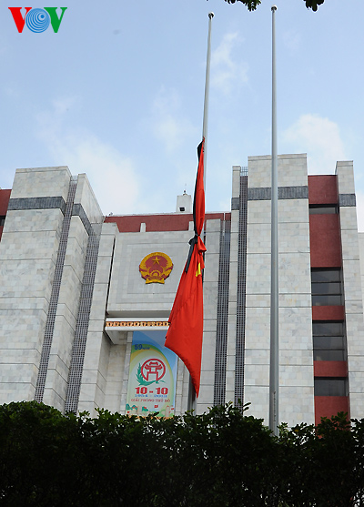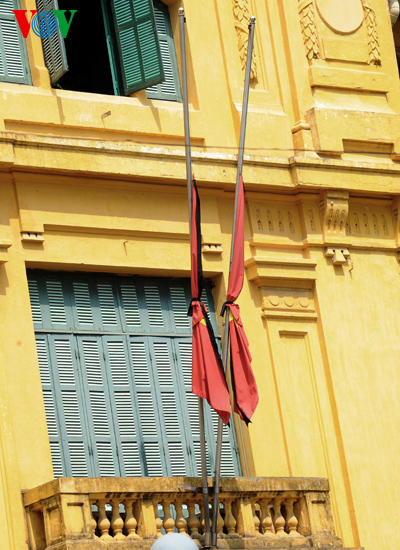 | ເຮືອນຢູ່ຂອງປະຊາຊົນ ຢູ່ນະຄອນ ຮ່າໂນ້ຍກໍ່ຊັກທຸງລົງເຄິ່ງເສົາ |