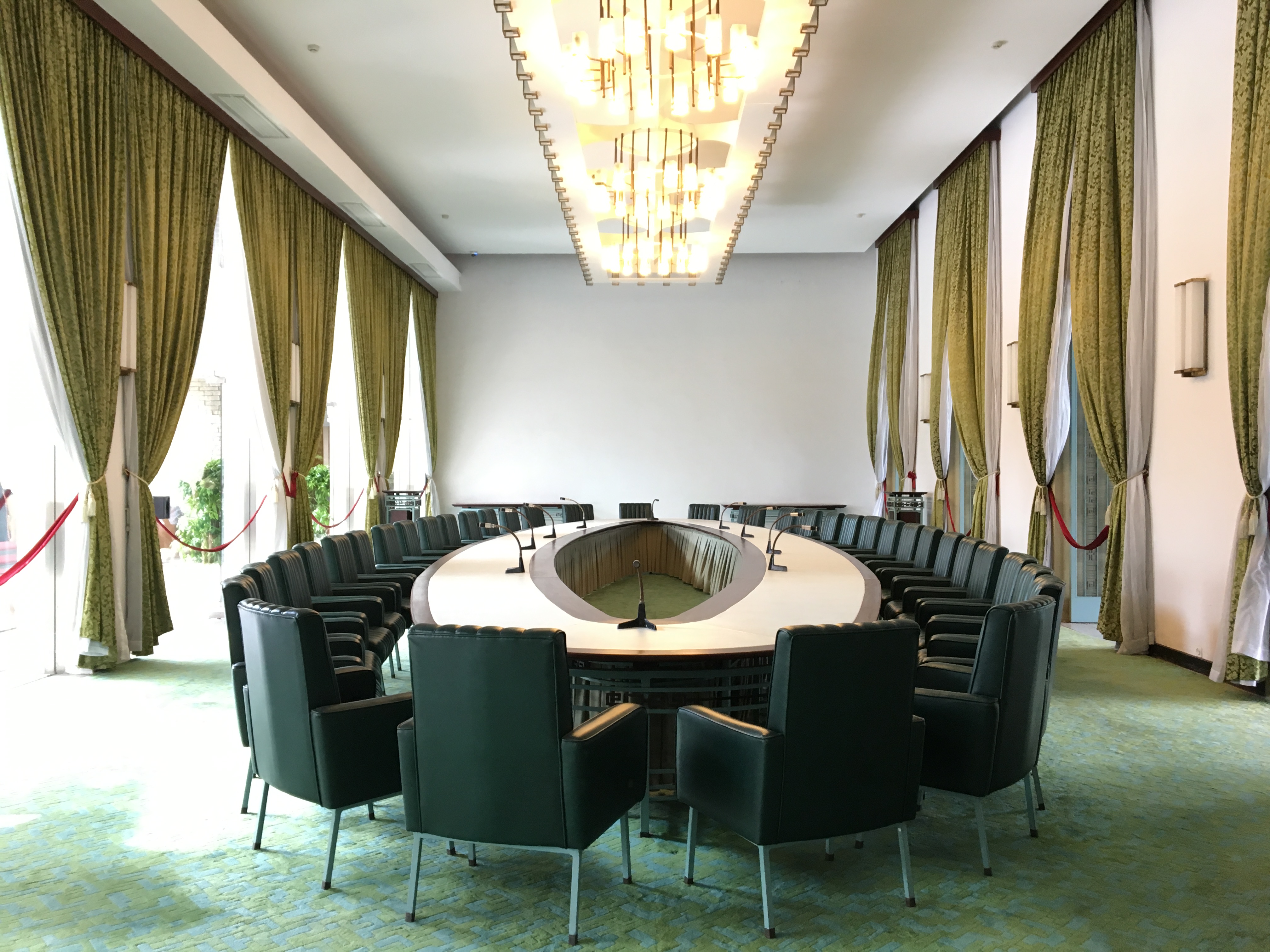 ພິ​ເສດ​ ​ໃນ​ທຳນຽບ​ເອກະລາດ ມີ​ຫລາຍ​ຫ້ອງ​ໄດ້​ຮັບ​ການປະ​ດັບ​ປະດາ​ຕາມສະຖາປັດຕະຍະກຳ​ທີ່​ແຕກຕ່າງກັນ ​ອີງ​ຕາມ​ຈຸດປະສົງ​ຂອງ​ການ​ນຳ​ໃຊ້. ​ໃນພາບ​ດັ່ງ​ກ່າວ​ແມ່ນ​ຫ້ອງ​ປະຊຸມຄະນະ​ລັດຖະບານ​ຂອງ​ລະບອບ​ເກົ່າ.