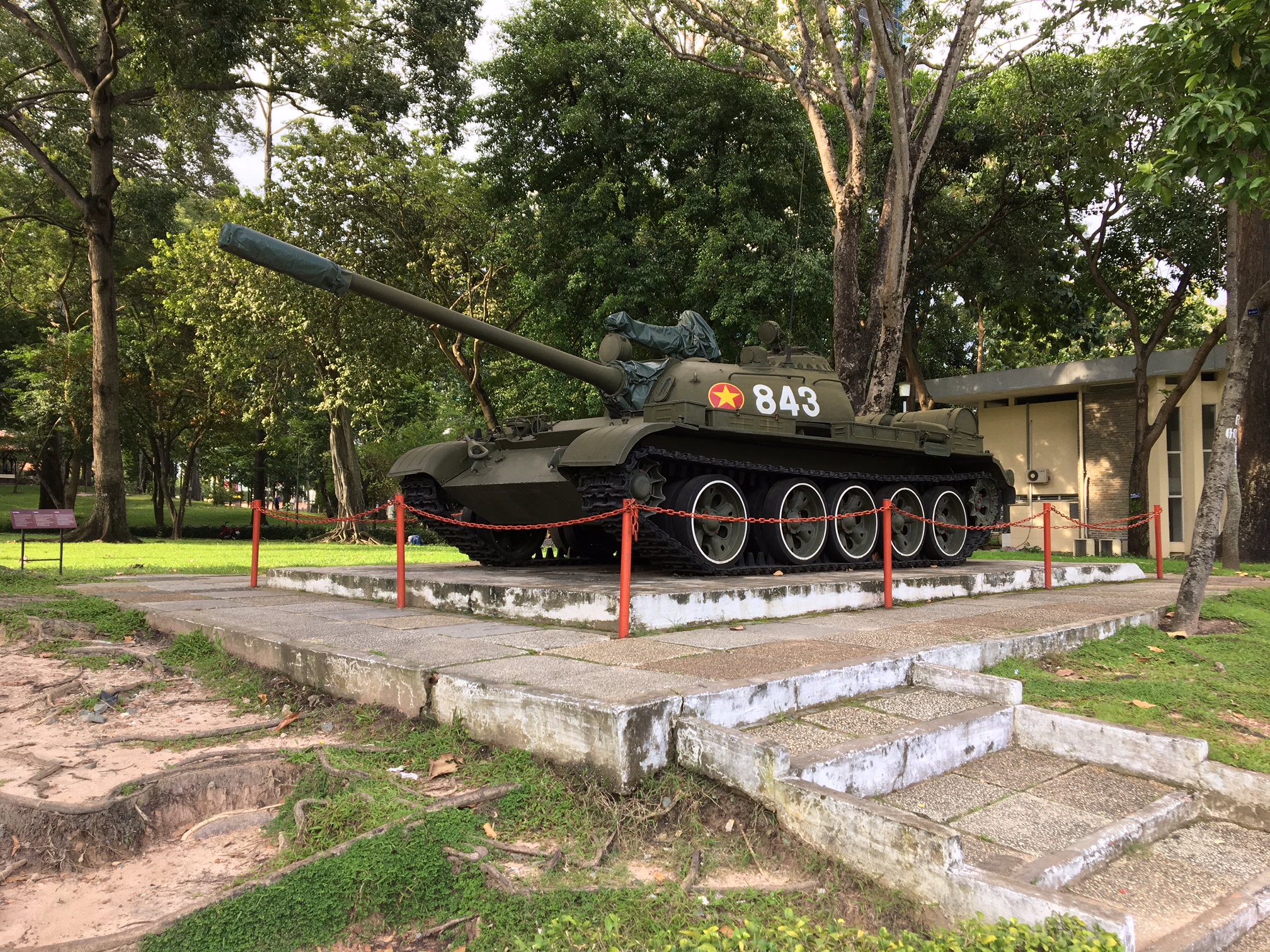 ທີ່​ເດີນ​ທຳນຽບ​ເອກ​ະລາດ​ໄດ້​ວາງສະ​ແດງ​ລົດ​ຖັງ 2 ຄັນ, ທີ່ໜຶ່ງ​​ແມ່ນ​ລົດ​ຖັງມີ​ໝາຍ​ເລກ 843 ຂອງ​ທະຫານ​ປົກ​ປ່ອຍ​ຂຶ້ນ​ກັບກອງຮ້ອຍ 4, ກອງພັນ​ນ້ອຍທີ 1, ກອງ​ພົນ​ນ້ອຍ​ລົດ​ຖັງ 203, ກອງພົນ​ໃຫຍ່ 2 ນຳ​ໜ້າຮູບ​ແຖວ​ໄດ້​ຕຳໃສ່​ປະຕູສຳຮອງ​ຂອງ​ທຳນຽບ​ເອກະລາດ​ໃນ​ເວລາ 10 ​ໂມງ 45 ນາທີວັນ​ທີ 30/04/1975.
