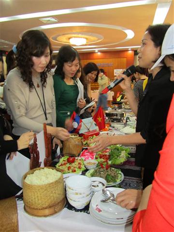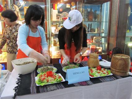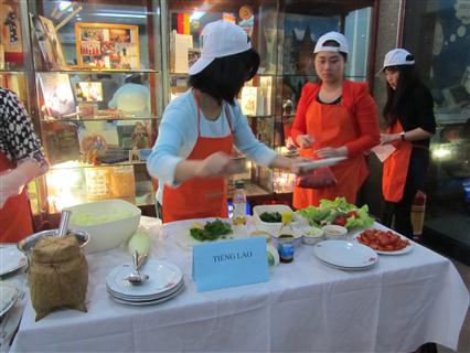 ການແຂ່ງຂັນນັ້ນ ແມ່ນອາຫານພື້ນເມືອງຂອງລາວຄື: ເຂົ້າໜຽວ, ລາບ, ຕຳ່ສົ້ມ... ເພື່ອແນະນຳໃຫ້ເພື່ອນຮ່ວມງານຮູ້ກ່ຽວກັັບ ວັດທະນະທຳດ້ານອາຫານການກິນຂອງລາວ. |