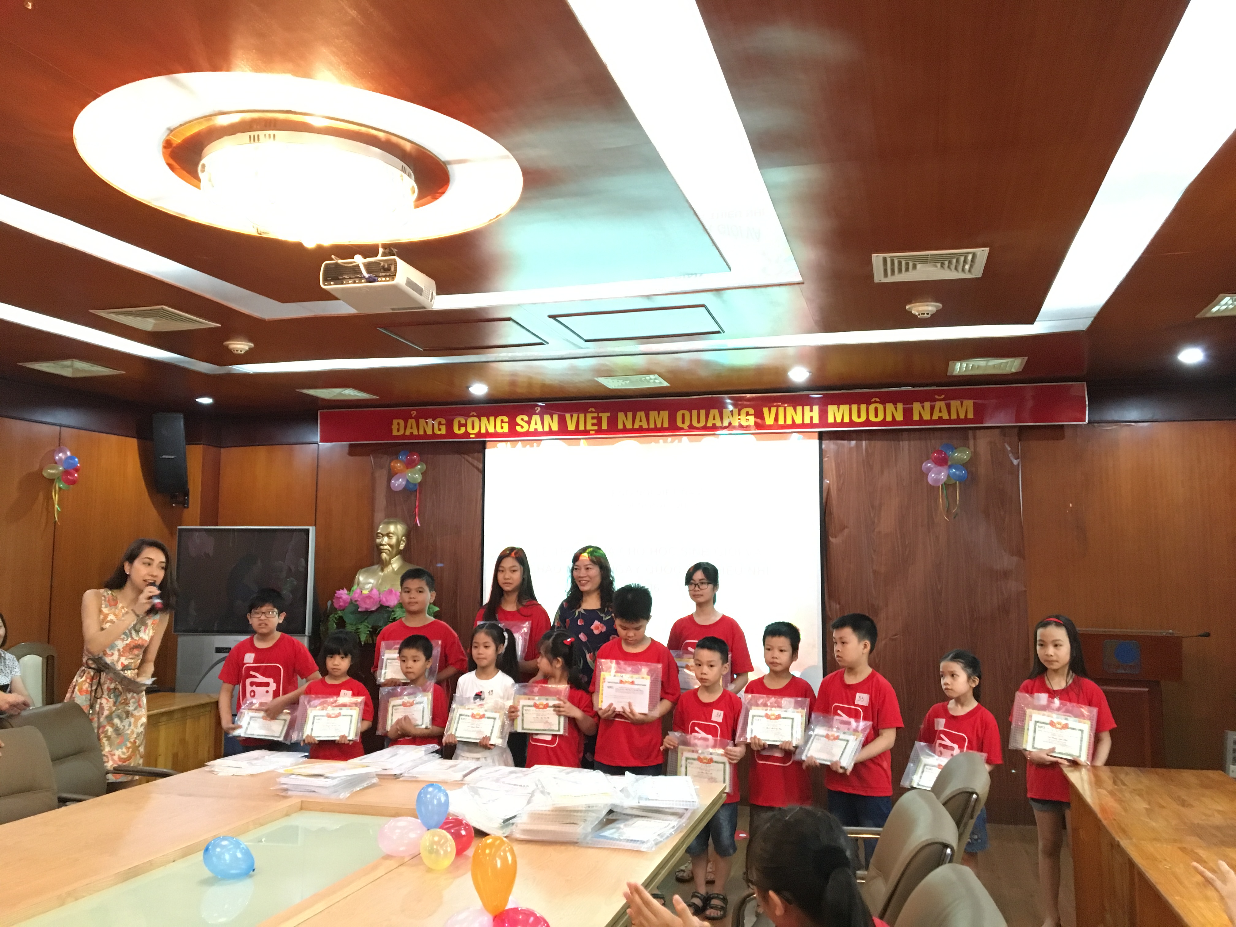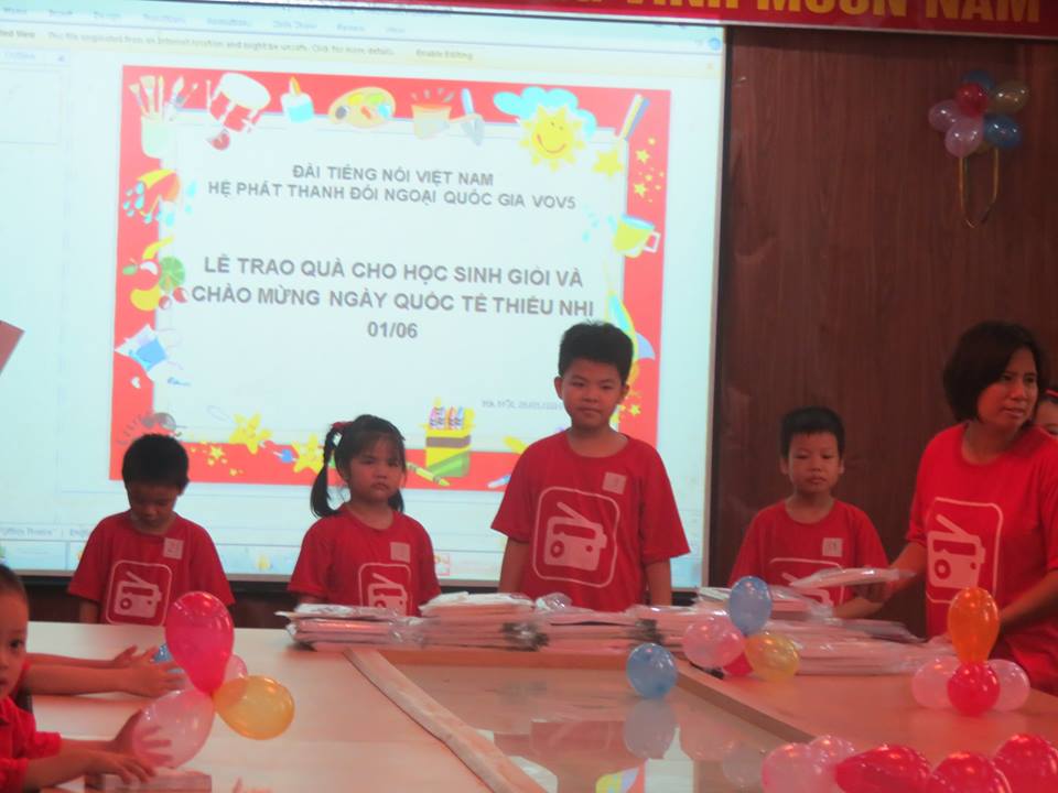 vovworld - ເນື່ອງ​ໃນ​ໂອກາດ​ວັນ​ບຸນ​ເພື່ອ​ເດັກນ້ອຍສາກົນ​ 1/6. ຕອນ​ເຊົ້າ​ວັນ​ທີ 28/05 ຢູ່​ລະບົບ​ລາຍການ​ກະຈາຍສຽງ​ພາສາ​ຕ່າງປະ​ເທດ​ແຫ່ງ​ຊາດ ວິທະຍຸ​ກະຈາຍສຽງ ຫວຽດນາມ (VOV5) ​​​ໄດ້​ດຳ​ເນີນ​ພິທີ​ມອບ​ຂອງຂວັນ​ໃຫ້​ບັນດາ​ພວກ​ຫຼານເຍົາວະຊົນ,​ອະນຸຊົນ ​ແລະ ນັກຮຽນ​​ເກັ່ງ ​ເປັນ​ລູກ​ຫຼານຂອງ​ພະນັກງານ, ພາລະ​ກອນໃນລະບົບ​ລາຍການ​ກະຈາຍສຽງ​ພາສາ​ຕ່າງປະ​ເທດ​ແຫ່ງ​ຊາດ. ລາຍການ​ໂດຍກຳມະບານສົມ​ທົບ​ກັບ​ຄະນະ​ຊາວ​ໜຸ່ມລະບົບ​ລາຍການ​ກະຈາຍສຽງ​ພາສາ​ຕ່າງປະ​ເທດ​ແຫ່ງ​ຊາດຈັດ​ຕັ້ງ. ​ເຂົ້າ​ຮ່ວມ​ລາຍການ​ມີ​ຄະນະ​ຜູ້ອຳນວຍການ ​ແລະ ລູກ​ຫຼານຂອງ​ພະນັກງານ, ພາລະ​ກອນເປັນຈຳນວນ​ຫລວງຫລາຍ.