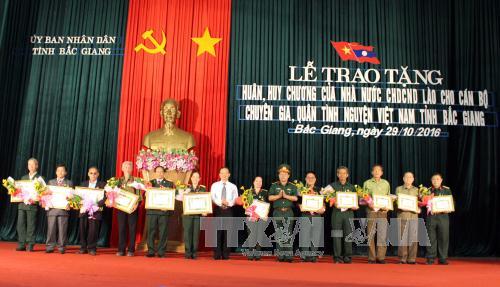 ເພື່ອນ ຈິດຕະວົງ ທີ່ຮັກແພງ, ວັນທີ 29/10 ຜ່ານມາ, ຄະນະກຳມະການປະຊາຊົນແຂວງບັ໋ກຢາງ ໄດ້ຈັດພິທີປະດັບຫຼຽນໄຊ, ຫຼຽນກາຂອງລັດ ລາວ ໃຫ້ພະນັກງານ, ນັກຊ່ຽວຊານ, ທະຫານອາສາສະໝັກຫວຽດນາມ ທີ່ມີຜົນງານຊ່ວຍເຫຼືອປະເທດລາວ, ເຊິ່ງປະຈຸບັນພວມເຮັດວຽກ, ດຳລົງຊີວິດຢູ່ແຂວງບັ໋ກຢາງ. ໃນການປະດັບຄັ້ງນີ້, ມີພະນັກງານ, ນັກຊ່ຽວຊານ, ທະຫານອາສາສະໝັກຫວຽດນາມ 596 ຄົນທີ່ເຄີຍໄປຊ່ວຍເຫຼືອການປະຕິວັດລາວ ໃນໄລຍະແຕ່ປີ 1945 - 1975 ໄດ້ຮັບຫຼຽນໄຊ, ຫຼຽນກາຕໍ່ຕ້ານ. ໃນນັ້ນ, ລັດລາວໄດ້ປະກອບຫຼຽນໄຊເອກະລາດຊັ້ນໜຶ່ງໃຫ້ 74 ຄົນ; ຫຼຽນໄຊຕໍ່ຕ້ານຊັ້ນໜຶ່ງໃຫ້ 218 ຄົນ; ຫຼຽນໄຊຕໍ່ສູ້ຕ້ານພວກລ່າເມືອງຂຶ້ນຝລັ່ງໃຫ້ 11 ຄົນ; ຫຼຽນໄຊຕໍ່ສູ້ຕ້ານຈັກກະພັດອາເມລິກາ ໃຫ້ 293 ຄົນ. ນີ້ແມ່ນຂອງຂວັນອັນສູງສົ່ງເຊິ່ງພັກ ແລະ ລັດລາວ ໄດ້ປະດັບໃຫ້ເພື່ອຮັບຮູ້ບັນດາຜົນງານການອຸທິດສ່ວນຊ່ວຍເຫຼືອການປະຕິວັດລາວ ແຕ່ໄລຍະຕ່ໍສູ້ກູ້ຊາດ, ຕ້ານການຮຸກຮ້ານ. ບັນດາຜົນງານຕໍ່ສູ້ພິລະອົງອາດ, ບັນດາຜົນງານໃຫຍ່ຫຼວງຂອງບັນດາພະນັກງານ, ນັກຊ່ຽວຊານ, ທະຫານອາສາສະໝັກຫວຽດນາມ ໄດ້ປະກອບສ່ວນສຳຄັນໃຫ້ແກ່ການເພີ່ມທະວີການພົວພັນມິດຕະພາບ, ຄວາມສາມັກຄີແບບພິເສດ ແລະ ການຮ່ວມມືຮອບດ້ານທີ່ເປັນມູນເຊື້ອອັນດີງາມລະຫວ່າງລາວ ແລະ ຫວຽດນາມ.