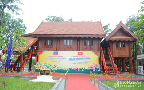 ເຮືອນທີ່ລະນຶກປະທານ ໂຮ່ຈີມິນ ທີ່ໄດ້ອອກແບບຕາມສະຖາປັດຕະຍາກຳເຮືອນຮ້ານ ລາວ (ພາບ: baonghean.vn) |