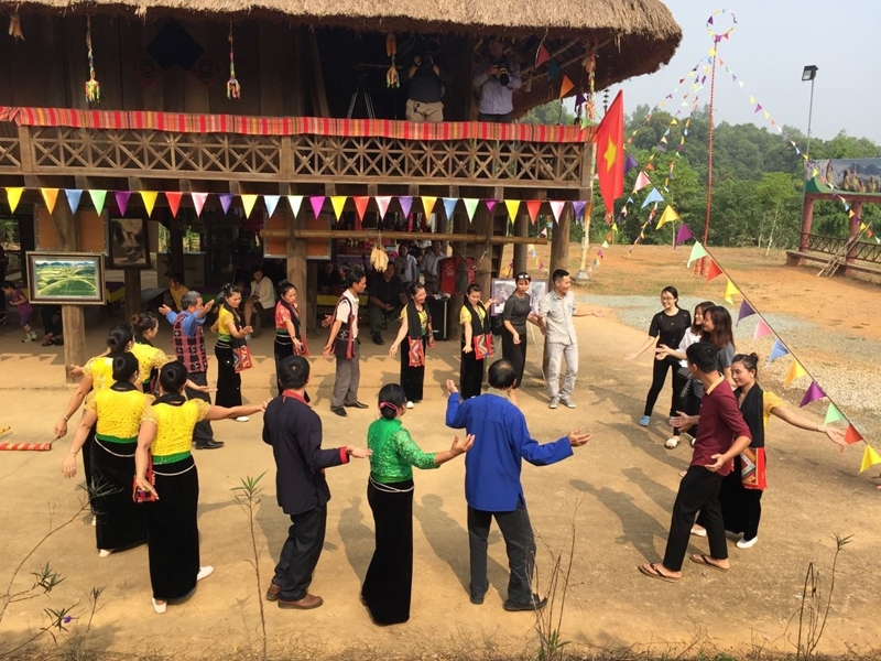 ແຂກທ່ອງທ່ຽວເຊື່ອມຕົວກັບວັດທະນະທຳຂອງເຜົ່າຜູ້ໄທ ຢູ່ບ້ານວັດທະນະທຳ ແລະ ການທ່ອງທ່ຽວບັນດາເຜົ່າ (ພາບ: dangcongsan.vn)
