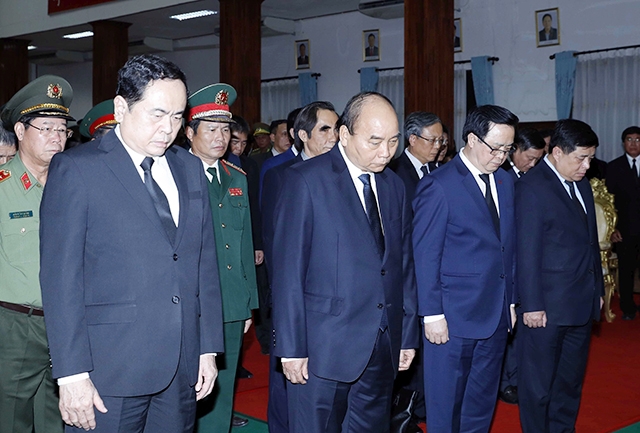ທ່ານນາຍົກລັດຖະມົນຕີຫວຽດນາມ ຫງວຽນຊວັນຟຸກເຂົ້າຮ່ວມພິທີໄວ້ອາໄລທ່ານພົນເອກ ສີສະຫວາດແກ້ວບຸນພັນ (ພາບ: TTXVN) |