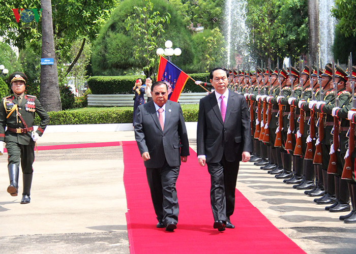 ເພື່ອນ ແປງ ແກ້ວມະນີ ທີ່ຮັກແພງ ! ການຢ້ຽມຢາມທາງລັດຖະກິດເຖິງ ລາວ ຂອງທ່ານປະທານປະເທດ ເຈີ່ນດ້າຍກວາງ ໃນລະຫວ່າງວັນທີ 12-14/6 ໄດ້ປະສົບຜົນສຳເລັດຢ່າງຈົບງາມ. ພາຍຫລັງພິທີຕ້ອນຮັບທີ່ໄດ້ຮັບການຈັດຂື້ນຢ່າງສົມກຽດ, ທ່ານປະທານປະເທດ ເຈີ່ນດ້າຍກວາງ ໄດ້ມີການເຈລະຈາກັບທ່ານເລຂາທິການໃຫຍ່ ປະທານປະເທດ ລາວ ບຸນຍັງ ວໍລະຈິດ. ຫລັງຈາກນັ້ນ ທ່ານປະທານປະເທດ ເຈີ່ນດ້າຍກວາງ ກໍ່ມີບັນດາການພົບປະເຈລະຈາກັບທ່ານນາຍົກລັດຖະມົນຕີ ລາວ ທອງລຸນ ສີສຸລິດ, ທ່ານນາງປະທານສະພາແຫ່ງຊາດ ປານີ ຢາທໍ່ຕູ້ ແລະ ຢ້ຽມຢາມຖາມຂ່າວອະດີດການນຳຂັ້ນສູງຂອງ ລາວ ບາງທ່ານ, ແລະມີການໂອ້ລົມກັບພະນັກງານ, ພາລະກອນສະຖານທູດ ຫວຽດນາມ ແລະ ຜູ້ຕາງໜ້າປະຊາຄົມຊາວ ຫວຽດນາມ ທີ່ພວມຮ່ຳຮຽນ, ທຳມາຫາກິນ, ດຳລົງຊີວິດຢູ່ ລາວ. ທີ່ບັນດາການພົບປະເຈລະຈາ, 2 ຝ່າຍໄດ້ແຈ້ງໃຫ້ກັນຊາບກ່ຽວກັບສະພາບການພົ້ນເດັ່ນຂອງແຕ່ລະພັກ, ແຕ່ລະປະເທດ; ແລກປ່ຽນບັນດາແຜນນະໂຍບາຍ, ມາດຕະການ ເພື່ອແນໃສ່ສືບຕໍ່ນຳການພົວພັນມິດຕະພາບທີ່ເປັນມູນເຊື້ອ, ຄວາມສາມັກຄີແບບພິເສດ ແລະ ການຮ່ວມມືຮອບດ້ານ ຫວຽດນາມ - ລາວ ໃຫ້ພັດທະນາຢ່າງເລິກເຊິ່ງກ້ວາງຂວາງ, ມີປະສິດທິຜົນ; ພິເສດ, 2 ຝ່າຍຢືນຢັນຈະສົບທົບກັນຢ່າງແໜ້ນແຟ້ນ ເພື່ອແນໃສ່ປັບປຸງຄວາມສາມັກຄີ ອາຊຽນ, ຍົກສູງບົດບາດເປັນໃຈກາງຂອງ ອາຊຽນ ໃນໂຄງປະກອບຄວາມໝັ້ນຄົງຂອງພາກພື້ນ; ເນັ້ນໜັກເຖິງຄວາມສຳຄັນຂອງການຮັກສາສັນຕິພາບ, ສະຖຽນລະພາບ, ຄວາມສະຫງົບປອດໄພຢູ່ທະເລຕາເວັນອອກ; ເຫັນດີເປັນເອກະພາບພ້ອມກັບບັນດາປະເທດ ອາຊຽນ ຊຸກຍູ້ການແກ້ໄຂຄວາມຂັດແຍ້ງກັນຢູ່ທະເລຕາເວັນອອກ ດວ້ຍມາດຕະການສັນຕິພາບ, ບົນພື້ນຖານເຄົາລົບກົດໝາຍສາກົນ; ພ້ອມກັບ ຝ່າຍຕ່າງໆ ປະຕິບັດຖະແຫຼງການກ່ຽວກັບການປະພຶດຂອງບັນດາຝ່າຍຢູ່ທະເລຕາເວັນອອກ (DOC) ຢ່າງຄົບຖ້ວນ ແລະ ມີປະສິດທິຜົນ ແລະ ບັນລຸໄດ້ຫຼັກການກ່ຽວກັບການປະພຶດຂອງຝ່າຍຕ່າງໆຢູ່ທະເລຕາເວັນອອກ (COC) ໂດຍໄວ ເພື່ອແນໃສ່ຮັກສາສັນຕິພາບ, ສະຖຽນລະພາບ, ການຮ່ວມມື ແລະ ພັດທະນາຢູ່ພາກພື້ນ ແລະ ໃນໂລກ. 2 ຝ່າຍເຫັນດີເປັນເອກະພາບ ສືບຕໍ່ເພີ່ມທະວີສົມທົບກັນຢ່າງແໜ້ນແຟ້ນ ແລະ ສົມທົບກັບບັນດາປະເທດ, ອົງການຈັດຕັ້ງສາກົນຕ່າງໆໃນການຄຸ້ມຄອງ, ນຳໃຊ້ແຫຼ່ງນ້ຳແມ່ນ້ຳຂອງແບບຍືນຍົງ ແລະ ມີປະສິດທິຜົນ.