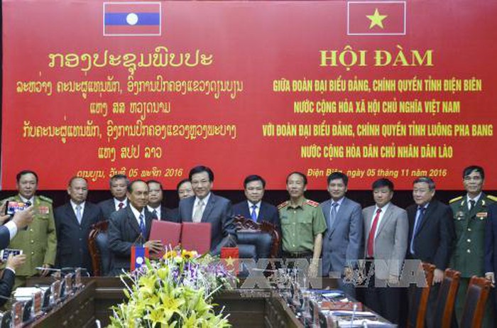 ກອງປະຊຸມພົບປະລະຫວ່າງ ຄະນະຜູ້ແທນພັກແຂວງ ດຽນບຽນ, ຫວຽດນາມ ແລະ ຄະນະຜູ້ແທນພັກແຂວງ ຫຼວງພະບາງ, ລາວ (ພາບ: TTXVN)