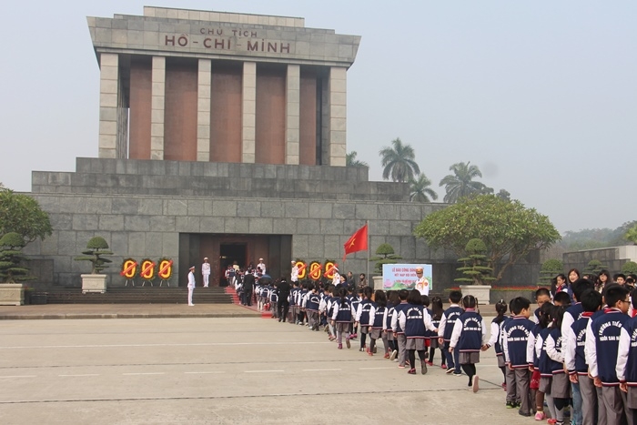 ນ້ອງໆນັກຮຽນເຂົ້າໄວ້ອາໄລປະທານໂຮ່ຈີມິນ |