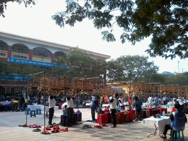 ໃນເດີນຂອງໂຮງຮຽນປະຖົມຫງອກເລິມ-ເມືອງລອງບຽນ-ຮ່າໂນ້ຍ, ນອກຈາກຜູ້ລ້ຽງນົກກ່ວາ 700 ຄົນພ້ອມກັບບັນດາໂຕນົກທີ່ນຳມາເຂົ້າຮ່ວມງານປະກວດແລ້ວ, ຍັງມີຜູ້ເຂົ້າຊົມເປັນຈຳນວນຫຼວງຫຼາຍ. ເພື່ອນຫງວຽນຫງອກດຽບ, ຢູ່ອຽນວຽນ ມີຄວາມປະທັບໃຈທີ່ສຸດຍ້ອນໄດ້ເຫັນປະຈັກຕາງານປະກວດສຽງນົກຮ້ອງເປັນຄັ້ງ ທຳອິດ: