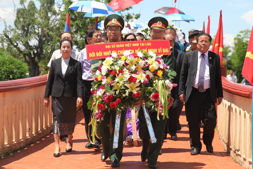 ເພື່ອນແກ້ວຕາ, ຄຳເບັ່ງ, ວັນທາ ທີ່ຮັກແພງ, ວັນທີ 14/5 ຜ່ານມາ, ສະຖານທູດ ຫວຽດນາມ ປະຈຳ ສປປ ລາວ ໄດ້ສົມທົບກັບບັນດາອົງການກ່ຽວຂ້ອງຈັດຕັ້ງພິທີຖະຫວາຍທູບທຽນຢູ່ອະນຸສອນສະຖານປະທານ ໂຮ່ຈີມິນ ຢູ່ບ້ານ ຊຽງວາງ, ເມືອງ ຫນອງນົກ, ແຂວງຄຳມ່ວນ - ພາກກາງ ລາວ ເນື່ອງໃນໂອກາດສະເຫຼີມສະຫຼອງ 127 ປີແຫ່ງວັນຄ້າຍວັນເກີດຂອງເພິ່ນ (19/5/1890 – 19/5/2017). ຜູ້ແທນເກືອບ 200 ຄົນແມ່ນບັນດາພະນັກງານ, ພາລະກອນສະຖານທູດ ແລະ ຜູ້ຕາງໜ້າສະມາຄົມມິດຕະພາບ ລາວ - ຫວຽດນາມ, ອຳນາດການປົກຄອງແຂວງ ຄຳມ່ວນ, ສະມາຄົມວິສາຫະກິດ ຫວຽດນາມ ຮ່ວມມື ແລະ ລົງທຶນຢູ່ລາວ ພ້ອມກັບຜູ້ຕາງໜ້າພໍ່ແມ່ປະຊາຊົນ, ພະສົງສຳມະເນນເຊິ່ງແມ່ນ ຊາວ ຫວຽດນາມ ອາໄສຢູ່ລາວເຂົ້າຮ່ວມເປັນຈຳນວນຫຼວງຫຼາຍ. ກ່າວຄຳເຫັນທີ່ພິທີ, ທ່ານ ຫງວຽນບ໋າຮູ່ງ, ເອກອັກຄະລັດຖະທູດວິສາມັນຜູ້ມີອຳນາດເຕັມແຫ່ງ ສສ ຫວຽດນາມ ປະຈຳ ສປປ ລາວ, ກ່າວຄຳເຫັນວ່າ: