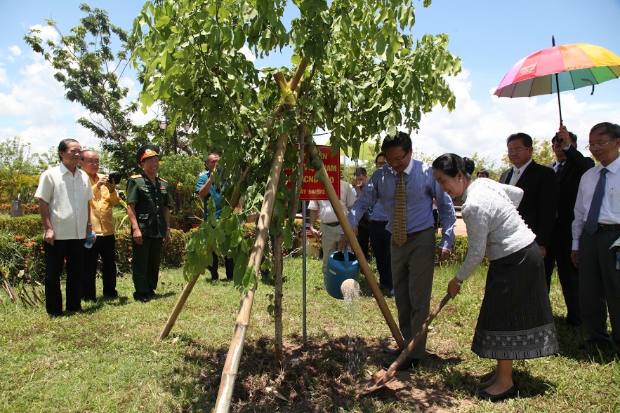 ທ່ານເອກອັກຄະລັດຖະທູດ ຫວຽດນາມ ປະຈຳ ລາວ ຫງວຽນບ໋າຮູ່ງ ພ້ອມກັບອັກຄະລັດຖະທູດ, ຫົວໜ້າສະຖານກົງສູນໃຫຍ່ ຫວຽດນາມ ຢູ່ສະຫວັນນະເຂດ, ປາກເຊ (ພາກກາງລາວ), ຜູ້ຕາງໜ້າສະມາຄົມວິສາຫະກິດ ຫວຽດນາມ ຢູ່ລາວໄດ້ປູກຕົ້ນໄມ້ທີ່ລະນຶກຢູ່ເຂດອະນຸສອນສະຖານດັ່ງກ່າວ. ເນື່ອງໃນໂອກາດນີ້, ຜູ້ຕາງໜ້າສະມາຄົມວິສາຫະກິດ ຫວຽດນາມ ໄດ້ມອບຂອງຂວັນ 50 ພູດຍອດມູນຄ່າ 1.000 USD ໃຫ້ພໍ່ແມ່ປະຊາຊົນຊາວ ຫວຽດນາມ ທີ່ທຸກຍາກໃນບໍລິເວນແຂວງ.