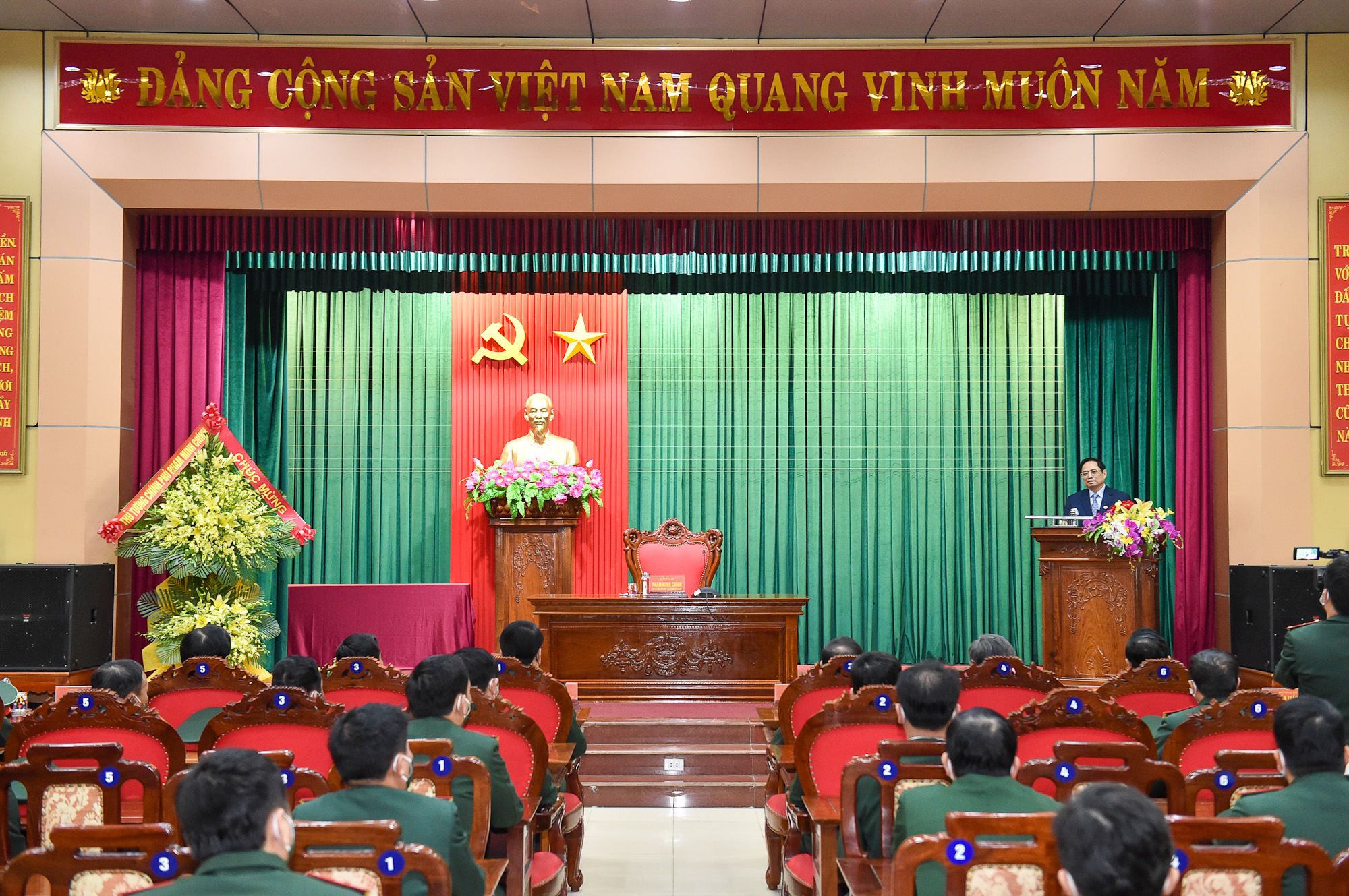 ທ່ານນາຍົກລັດຖະມົນຕີ ຫວຽດນາມ ຟ້າມມິງຈິງ ກ່າວຄຳເຫັນທີ່ການເຮັດວຽກກັບການນຳກອງບັນຊາການທະຫານ ແຂວງ ກ໋ວາງບິ່ງ (ພາບ: baochinhphu.vn)