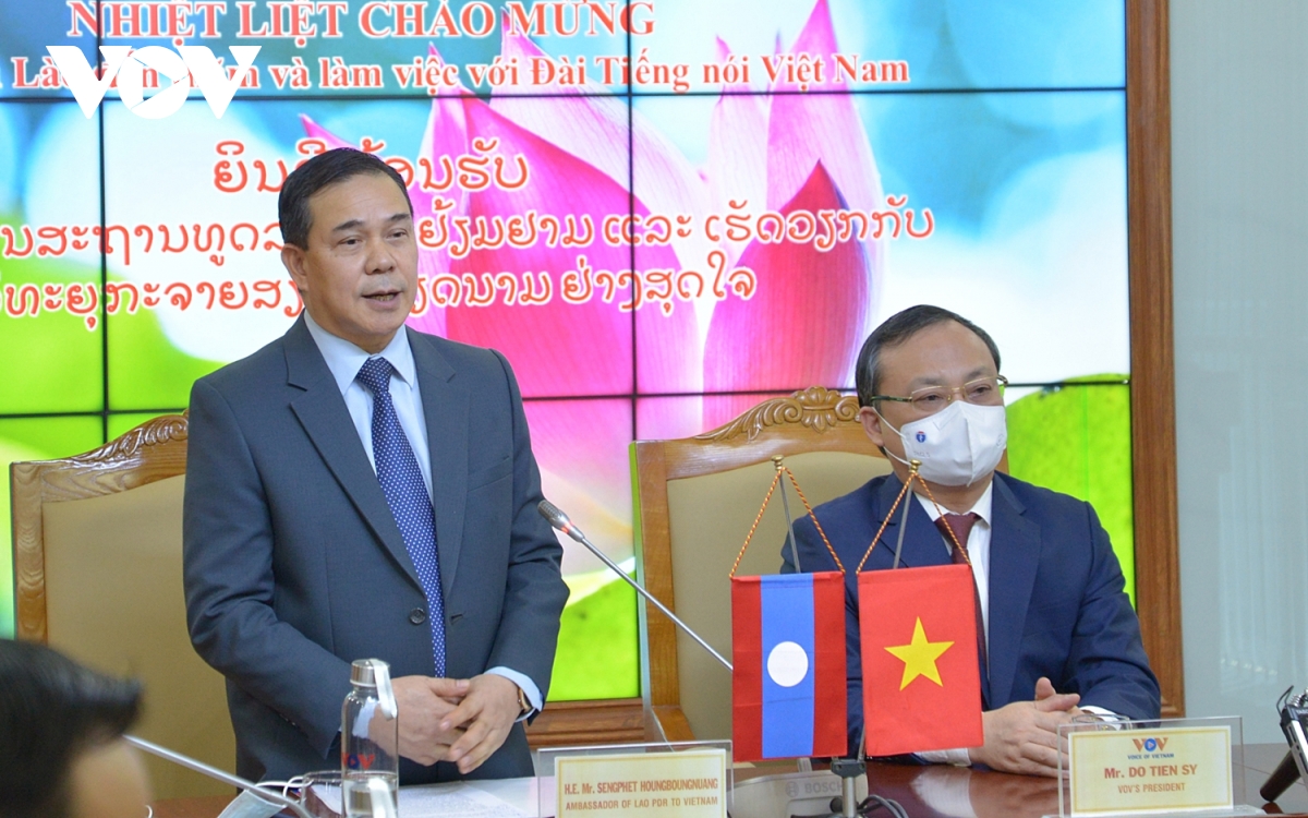 ເນື່ອງໃນໂອກາດການມາຢ້ຽມຢາມ ແລະ ເຂົ້າຢ້ຽມຂ່ຳນັບທ່ານ ໂດ້ຕຽນຊີ, ກຳມະການກົມການເມືອງສູນກາງພັກ, ຜູ້ອຳນວຍການໃຫຍ່ VOV ໃນວັນທີ 12 ຕຸລາ ຜ່ານມາ. ທ່ານເອກອັກຄະລັດຖະທູດວິສາມັນຜູ້ມີອຳນາດເຕັມແຫ່ງສປປ.ລາວ ປະຈຳຫວຽດນາມ ແສງເພັດ ຮຸ່ງບຸນຍວງ ໄດ້ຮັບຮູ້ການຊ່ວຍເຫຼືອຢ່າງສຸດຈິດສຸດໃຈໃນຫຼາຍດ້ານຂອງ VOV ທີ່ສະຫງວນໃຫ້ວິທະຍຸກະຈາຍສຽງແຫ່ງຊາດລາວ ນັບແຕ່ໄລຍະສົງຄາມຈົນເຖິງປະຈຸບັນ, ຖືນັ້ນແມ່ນການປະກອບສ່ວນສຳຄັນເຂົ້າໃນການພັດທະນາ, ເພີ່ມພູນຄູນສ້າງການພົວພັນ 2 ຝ່າຍລາວ-ຫວຽດນາມ. ທ່ານ ແສງເພັດ ຮຸ່ງບຸນຍວງ ກໍ່ຕີລາຄາສູງຕໍ່ຄວາມມານະພະຍາຍາມບືນຕົວຂຶ້ນຢ່າງບໍ່ຢຸດຢັ້ງຂອງ VOV, ໃນນັ້ນມີພະແນກກະຈາຍສຽງບັນດາລາຍການພາກພາສາຕ່າງປະເທດ (VOV5) ຂອງ VOV ແມ່ນຊ່ອງກະຈາຍສຽງທີ່ສຳຄັນ, ທ່ານເອກອັກຄະລັດຖະທູດກ່າວວ່າ: