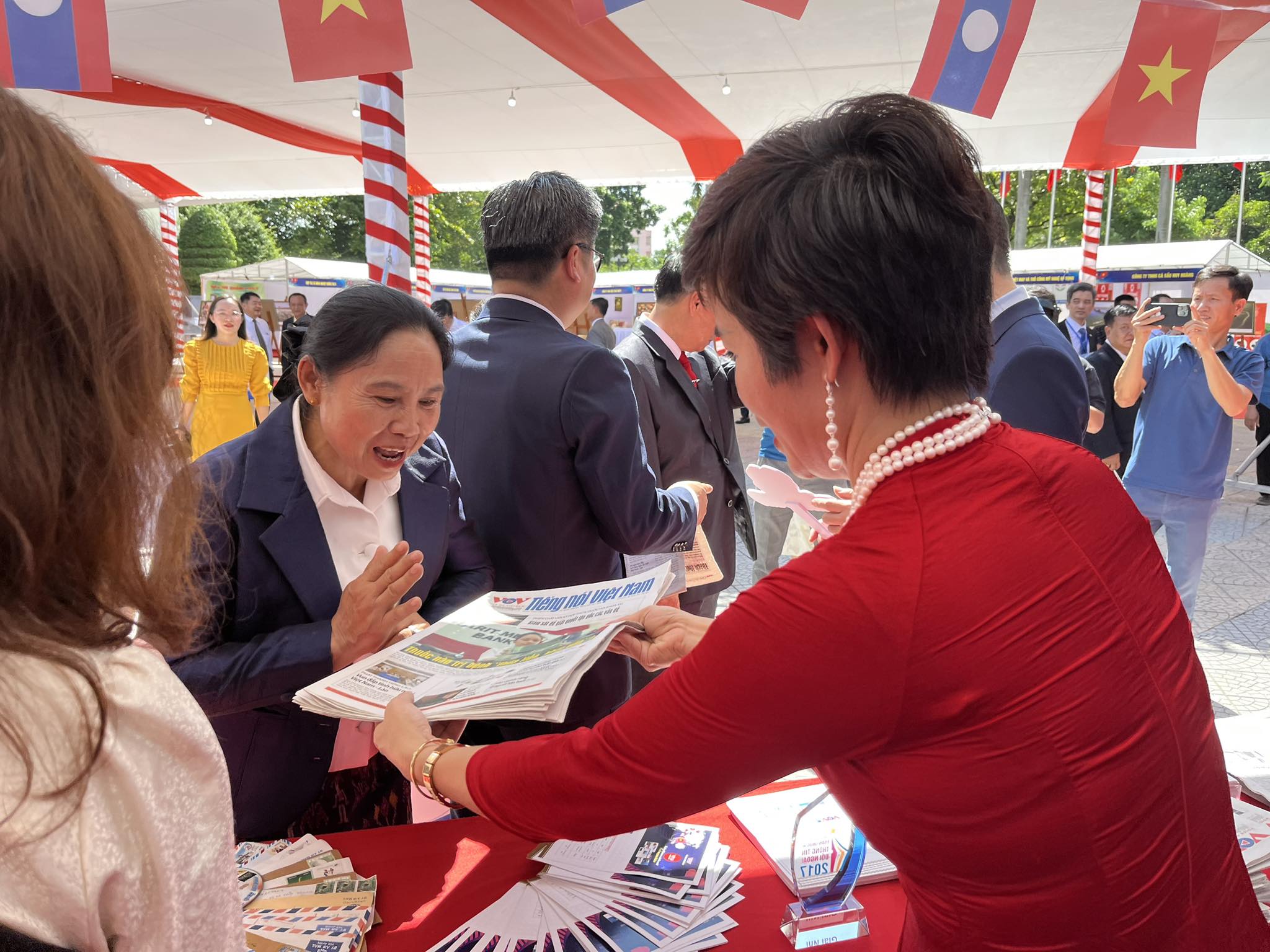 “ຂ້າພະເຈົ້າເຫັນວ່າ, VOV ໄດ້ປະດັບປະດາຮ້ານຂອງຕົນສວຍງາມທີ່ສຸດຢູ່ເຂດວາງສະແດງນີ້. ບັນດາອ້າຍ, ເອື້ອຍນັກຂ່າວ, ບັນນາທິການຂອງ VOV ກໍ່ມີຄວາມສຸດຈິດສຸດໃຈທີ່ສຸດ, ມີຫຼາຍພາບຖ່າຍ, ເຄື່ອງຂອງວາງສະແດງຢູ່ທີ່ນີ້ໄດ້ສະແດງໃຫ້ເຫັນວັດທະນະທຳຂອງ 2 ປະເທດ. ພິເສດແມ່ນບັນດາຂອງທີ່ລະນຶກຂອງ ລາວ ທີ່ໄດ້ສະສົມ, ໄດ້ຮັບ, ບັນດາພາບສາລະຄະດີ… ໄດ້ເອົາມາວາງສະແດງໃນຮ້ານນ້ອຍໆຄືແນວນັ້ນ, ໄດ້ສ້າງຂີດໝາຍສະເພາະຂອງ VOV. ເມື່ອທຽບໃສ່ບັນດາຮ້ານວາງສະແດງອື່ນ, ຮ້ານວາງສະແດງຂອງ VOV ໄດ້ສ້າງຈຸດພົ້ນເດັ່ນຫຼາຍຢ່າງ, ມີສີສັນສະເພາະ ສະແດງໃຫ້ເຫັນນ້ຳໃຈຄວາມສາມັກຄີລະຫວ່າງ 2 ປະເທດ”.