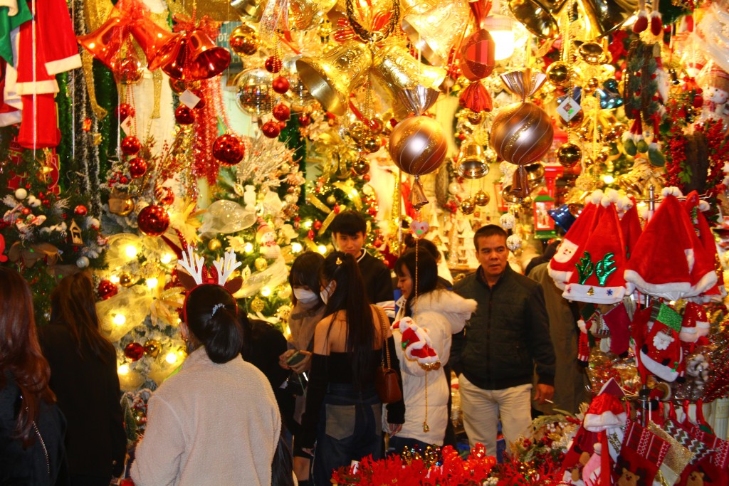 ບັນດາຮ້ານຂາຍເຄື່ອງໄດ້ວາງຂາຍເຄື່ອງປະດັບປະດາສຳລັບວັນບຸນຄຼິດສະມາດ(ພາບ: tuoitrethudo.com.vn)