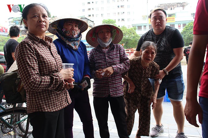 ເຖິງວ່າຮອດເວລາ 11ໂມງ00 ຮ້ານຈຶ່ງໄດ້ເປີດປະຕູຮັບແຂກຢ່າງເປັນທາງການ, ແຕ່ກ່ອນນັ້ນ, ກໍ່ມີຜູ້ມາຢືນລຽນແຖວຢູ່ນອກປະຕູຮ້ານຈຳນວນໜຶ່ງແລ້ວເພື່ອລໍຖ້າຊື້ເຂົ້າ. ກ່ອນທີ່ຈະເຂົ້າຮ້ານ, ແຕ່ລະຄົນຈະໄດ້ຮັບບັດຊື້ເຂົ້າຕາມລຳດັບໂດຍບັນດານັກອາສາສະໝັກມອບໃຫ້. ເອື້ອຍ ຫງວຽນທິເວີນ ແລະ ປ້າ ເຈິ່ນທິລີ໋ ພວມມີຄົນໃນຄອບຄົວກຳລັງ ປິ່ນປົວພະຍາດຢູ່ໂຮງໝໍ ແບັກມາຍ ໄດ້ມາລຽນແຖວຊື້ເຂົ້າແຕ່ເວລາ 10 ໂມງເຄິ່ງ, ໄດ້ແບ່ງປັນວ່າ: