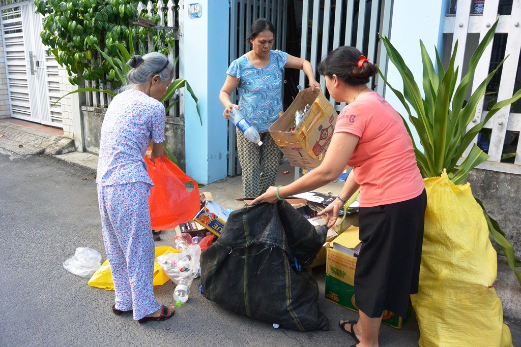 ປະມານ 2 ປີມານີ້, ເມື່ອຮອດວັນທິດຂອງທຸກໆອາທິດ, ບັນດາສະມາຊິກແມ່ຍິງຢູ່ສະມາຄົມແມ່ຍິງ ແທັງວິງ 4, ຕາແສງ ເທາະກວາງ, ນະຄອນ ດ່າໜັງ ໄດ້ລົງໄປເກັບຂີ້ເຫຍື້ອຢາງປຼາດສະຕິກ, ເຈ້ຍເສດຢູ່ນຳແຕ່ລະຄອບຄົວ. ຫລັງຈາກນັ້ນ, ເອື້ອຍນ້ອງແມ່ຍິງກໍ່ພ້ອມກັນຈັດແບ່ງປະເພດຂີ້ເຫຍື້ອ, ສ່ວນໜຶ່ງແມ່ນເອົາໄປຂາຍເພື່ອສ້າງເປັນກອງທຶນ, ອີກສ່ວນໜຶ່ງແມ່ນເອົາໄປຜະລິດຄືນໃໝ່ ເພື່ອເຮັດກັບປາກກາໃຫ້ແກ່ນັກຮຽນ. ເມື່ອເວົ້າກ່ຽວກັບເລື່ອງເຮັດອຸປະກອນການຮຽນຈາກສິ່ງເສດເຫຼືອນັ້ນ, ເອື້ອຍ ຟານທິຮວາ, ຫົວໜ້າສະມາຄົມແມ່ຍິງ ແທັງວິງ 4 ໃຫ້ຮູ້ວ່າ: ນີ້ແມ່ນແນວຄວາມຄິດຂອງສະມາຊິກແມ່ຍິງໃນສະມາຄົມ ລາວເປັນຄູສອນໂຮງຮຽນອະນຸບານ ແລະ ປັດຈຸບັນ, ລາວໄດ້ອອກກິນເບ້ຍບຳນານແລ້ວ. ມາຮອດປັດຈຸບັນ, ຮູບແບບນີ້ ໄດ້ສ້າງວຽກເຮັດງານທຳໃຫ້ແກ່ເອື້ອຍນ້ອງແມ່ຍິງໃນສະມາຄົມຫລາຍຄົນ. ຈາກວິທີເຮັດຄືດັ່ງກ່າວ, ສະມາຄົມແມ່ຍິງສາມາດສ້າງລາຍຮັບໄດ້ເກືອບສິບລ້ານດົ່ງ ເພື່ອສ້າງເປັນກອງທຶນຊ່ວຍເຫຼືອໃຫ້ແກ່ສະມາຊິກທີ່ທຸກຍາກ. ນອກນັ້ນ, ເພື່ອຫລຸດຜ່ອນການນຳໃຊ້ຖົງຢາງນີລົງ, ສະມາຄົມຍັງເກັບຊື້ຖົງຢາງນີລົງທີ່ໃຊ້ແລ້ວຈາກບັນດາຄອບຄົວ, ຫລັງຈາກນັ້ນ ກໍ່ເອົາໄປລ້າງໃຫ້ສະອາດ ແລ້ວຂາຍໃຫ້ບໍລິສັດສິ່ງແວດລ້ອມ. ເອື້ອຍ ຟານທິຮວາ ໃຫ້ຮູ້ວ່າ: