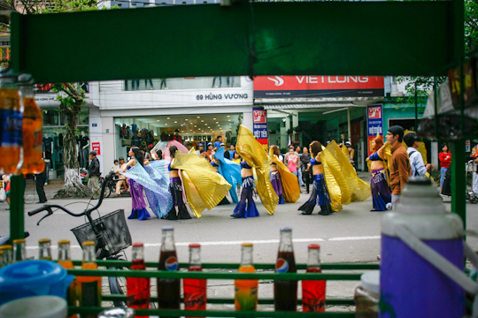 ງານບຸນບົນຖະໜົນຖືກດຳເນີນໃນຍາມແລງແຕ່ວັນທີ 8-14/4, ໃນບໍລິເວນຕໍ່ໜ້າຫໍວັດທະນະທຳຢູ່ໃຈກາງນະຄອນ ເຫ໋ວ ແລະ ຕາມຖະໜົນ ຮຸ່ງເວືອງ, ເລເລີ້ຍ, ຫງວຽນດິ່ງຈຽວ.