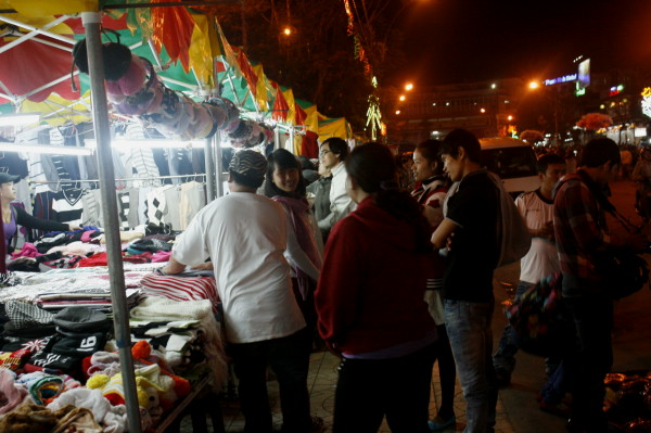 ກາງຄືນ, ດັ່ງນັ້ນໃນຕະຫຼາດກໍ່ຂາຍເຄື່ອງກັນໜາວດ້ວຍແລນຫຼາຍປະເພດຄື: ຜ້າພັນຄໍ, ໝວກ ແລະ ເສື້ອ, ສິ່ງພິເສດນັ້ນແມ່ນເຄືອ່ງແລນຢູ່ທີ່ນີ້ມີລາຄາຖືກກວ່າຢູ່ບ່ອນອື່ນ, ນັກທ່ອງທ່ຽວສາມາດຕໍ່ລາຄາ ແລະ ເລືອກເຟັ້ນຕາມໃຈມັກ. ປ້າ ຫງວຽນທິລົ້ວ, ເຈົ້າຂອງຮ້ານຂາຍເຄື່ອງກັນໜາວໃຫ້ຮູ້ວ່າ: