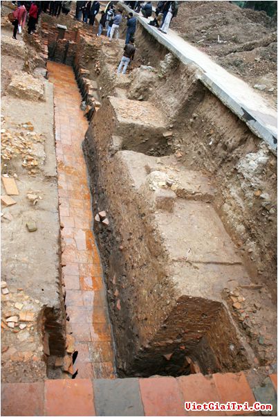 ”ຢູ່ທີ່ນີ້ໄດ້ຄົ້ນເຫັນຊັ້ນວັດທະນະທຳຂອງສະໄໝລາດຊະວົງ ເຈິ່ນ ທີ່ກ່າຍກອງເທິງຊັ້ນວັດທະນະທຳຂອງສະໄໝລາຊະວົງ ຫຼີ, ກໍ່ຄືຊອກເຫັນລະບົບລະບາຍນ້ຳຢູ່ໃຕ້ພື້ນດິນ. ບັນດາຮ່ອງຮອຍໃນສະໄໝລາຊະວົງເຈີ່ນສະແດງໃຫ້ເຫັນວ່າ, ສະຖາປັດຕະຍະກຳຂອງສະໄໝນີ້ແມ່ນກ່າຍກອງເທິງຊັ້ນສະຖາປັດຕະຍະກຳຂອງສະໄໝລາຊະວົງ ຫຼີ. ຮອດສະໄໝລາຊະວົງ ເລ, ແມ່ນເຫັນໄດ້ຮ່ອງຮອຍທາງສະເດັດຂອງເຈົ້າຊີວິດຈາກ ດວານມົນ (Doan Mon) ເຖິງວັງ ກິ໋ງທຽນ (Kinh Thien)”