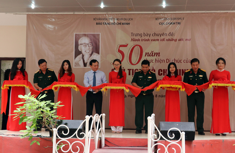 ພິທີຕັດແຖບຜ້າໄຂງານວາງສະແດງ50 ປີແຫ່ງວັນປະຕິບັດຄຳພິໄນກຳຂອງປະທານໂຮ່ຈິມີນ |