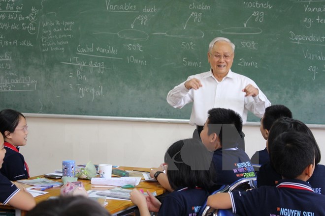 (vovworld)- 25 ປີຜ່ານມາ, ນາຍຄູດີເດັ່ນ ຫງວຽນຈ້ອງຫວີງ, ປະທານສະພາບໍລິຫານ ໂຮງຮຽນ ຫງວຽນຊຽວ ຮ່າໂນ້ຍ ພ້ອມກັບຄູອາຈານຫລາຍລຸ້ນຄົນ ໄດ້ມີການປ່ຽນໃຫມ່, ມີຫົວຄິດປະດິດສ້າງຢ່າງບໍ່ຢຸດຢັ້ງ ແລະ ພັດທະນາລະບົບໂຮງຮຽນປະຖົມ, ໂຮງຮຽນມັດຕະຍົມຕອນຕົ້ນ ແລະ ໂຮງຮຽນມັດທະຍົມຕອນປາຍ ຫງວຽນຊຽວ ກາຍເປັນໂຮງຮຽນມີຄຸນນະພາບສູງທີ່ມີຊື່ສຽງຂອງຮ່າໂນ້ຍ. ດ້ວຍຮູບແບບການສຶກສາ “ໂຮງຮຽນບໍລິການການສຶກສາມີຄຸນນະພາບສູງ”, ໂຮງຮຽນ ຫງວຽນຊຽວ ໄດ້ສິດສອນໃຫ້ນັກຮຽນຫລາຍລຸ້ນຄົນມີຄຸນນະພາບສູງຕາມທິດເຊື່ອມໂຍງເຂົ້າກັບສາກົນ.