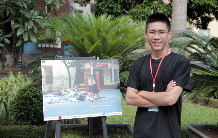 ໃນບໍລິເວນກ້ວາງປະມານ 100 ຕາແມັດຂອງສະຖາບັນຂ່າວສານ ແລະ ໂຄສະນາພວມວາງສະແດງຮູບຖ່າຍ 25 ແຜ່ນດ້ວຍ 2 ຫົວຂໍ້ຄື: ມີຄວາມຫຍຸ້ງຍາກຍ້ອນຂີ້ເຫຍື່ອ ແລະ ບັນດາຜູ້ທີ່ຫາກິນຈາກການເກັບຂີ້ເຫຍື່ອ. ຢູ່ໃສກໍ່ມີຂີ້ເຫຍື່ອເຕັມໄປໝົດ. ຖົງຢາງມີລົງມີຄົບທຸກສີ, ຂີ້ເຫຍື່ອຄົບທຸກຊະນິດ, ບັນດາຖົງຢາງໃສ່ຂີ້ເຫຍື່ອນັ້ນໃຫຍ່ກ່ວາຄົນ… ມີຮູບບາງແຜ່ນທຸກຄົນຕ້ອງອັດດັງຍ້ອນເໝັນຂີ້ເຫຍື່ອ ແຕ່ກໍ່ມີຫຼາຍຄົນຢືນຢູ່ເທິງກອງຂີ້ເຫຍື່ອ ດ້ວຍຮ້ອຍຍິ້ມທີ່ສົດໃສ… ທ້າວ ກຽນ, ຫົວໜ້າກຸ່ມນັກສຶກສາລວມມີ 11 ຄົນປະຕິບັດງານວາງສະແດງນີ້, ໃຫ້ຮູ້ວ່າ: