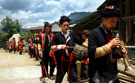 ເປົ່າແກໃນພິທີຢັ້ງຢືນເປັນຄົນເຕີບໃຫຍ່ຂອງຊົນເຜົ່າຢ້າວແດງ