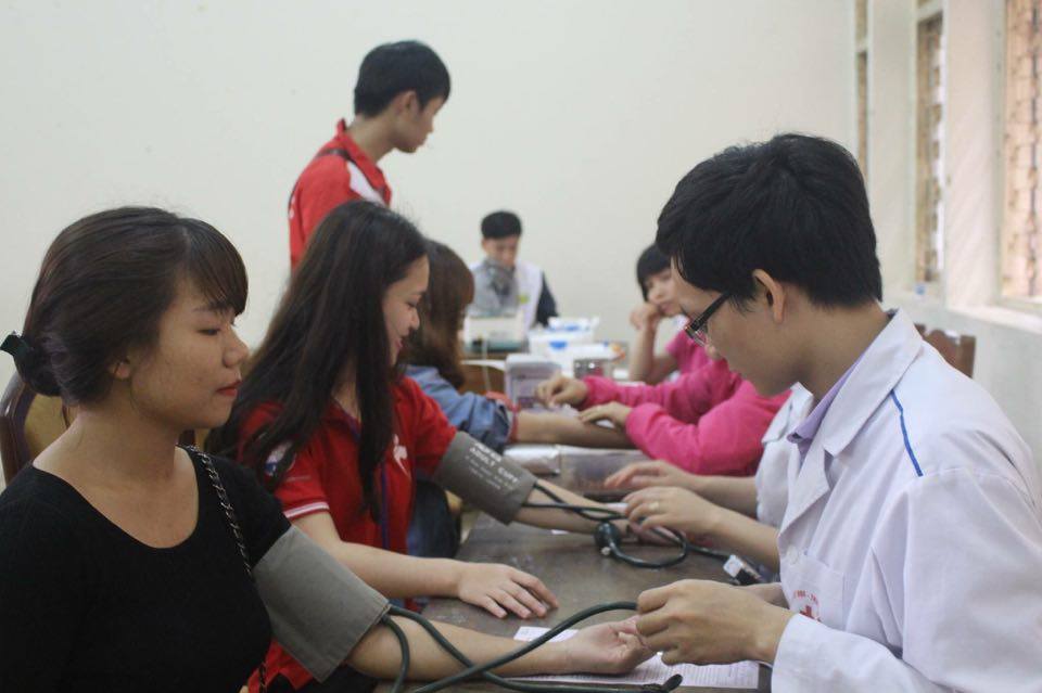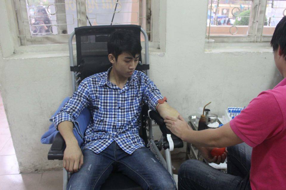 ໃນເວລາ 8 ໂມງ 15 ນາທີ, ບັນດາຜູ້ໄດ້ຈົດທະບຽບບໍລິຈາກເລືອດທຳອິດໄດ້ນຳຕົວເຂົ້າຫ້ອງຮຽນ, ເຊິ່ງແມ່ນບ່ອນກວດສຸຂະພາບກ່ອນທີ່ເອົາເລືອດ. ພາລະກອນການແພດປະມານ 10 ຄົນຂອງສະຖາບັນເລືອດສາດ ແລະ ສົ່ງເລືອດສູນກາງ, ນຸ່ງຊຸດເຄື່ອງແບບທ່ານໝໍສີຂາວພວມລໍຖ້າກວດສຸຂະພາບຂອງໄວໜຸ່ມກ່ອນທີ່ບໍລິຈາກເລືອດ. ນາງ ຫາຍຮ່າ, ເຊິ່ງແມ່ນນັກສຶກສາປີທີ 2, ສະຖາບັນໂຄສະນາຂ່າວສານ ແລະ ສື່ມວນຊົນ ພວມຢ້ານກົວຍ້ອນນີ້ເປັນຄັ້ງທຳອິດທີ່ລາວເຂົ້າຮ່ວມການບໍລິຈາກເລືອດ. ນາງ ຮ່າ ນັ່ງກົງກັນຂ້າມກັບພາລະກອນການແພດຊາຍຜູ້ໜຶ່ງ ທີ່ມີໃບໜ້າຍິ້ມແຍ້ມແຈ່ມໃສ ແລະ ຖາມລາວຫຼາຍຄຳຖາມກ່ຽວກັບສຸຂະພາບ. ທັງຖາມ, ທັງກວດຄວາມດັນເລືອດ ແລະ ຊັ່ງນ້ຳໜັກໄປພ້ອມ… ພາຍຫຼັງໄດ້ກວດສຸຂະພາບເປັນທີ່ຮຽບຮ້ອຍແລ້ວ, ນາງ ຮ່າ ຖືກພາໄປຫ້ອງທາງຂ້າງ. ລາວນັ່ງລົງ ແລະ ດັ້ນແຂນເສື້ອຂຶ້ນ. ທ່ານໝໍເລີ່ມແທງເອົາເລືອດ. ໃນເວລາທີ່ກຳລັງບໍລິຈາກເລືອດຍາມໃດກໍ່ມີສະມາຊິກໃນ “ກອງເລືອດ” ມານັ່ງຄຽງຂ້າງ, ໂອ້ລົມຖາມນັ້ນຖາມນີ້ເພື່ອຫລຸດຜ່ອນຄວາມເປັນຫ່ວງເປັນໃຍ. ພາຍຫຼັງເວລາ 4 – 5 ນາທີ, ນາງຮ່າ ຖືກໂຊມແຂນໄປຫ້ອງຂ້າງເພື່ອຟື້ນຟູສຸຂະພາບ, ຢູ່ທີ່ນີ້, ມີອາຫານເບົາ, ເຄື່ອງດື່ມ. ນາງຮ່າ ຕົກສະເງີ້ຍ້ອນວິວັດການບໍລິຈາກເລືອດບໍ່ຫຍຸ້ງຍາກຄືດັ່ງທີ່ລາວຄິດ: