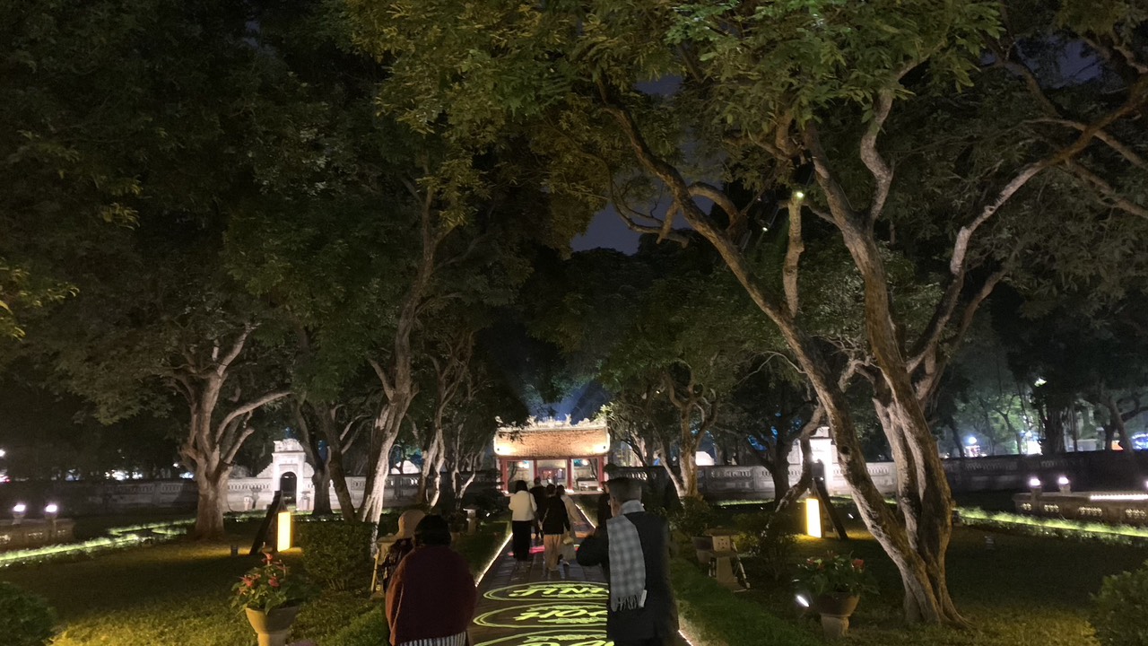 ເຖິງວ່າ ມາ ຫວຽດນາມ ຫຼາຍເທື່ອ ແລະ ຢ້ຽມຢາມ ວັນມ໋ຽວ - ກວກຕື້ຢ໋າມ ໃນກາງເວັນຫຼາຍເທື່ອແລ້ວກໍ່ຕາມ, ແຕ່ວ່າ ນີ້ແມ່ນຄັ້ງທຳອິດທີ່ ທ່ານ ອຳນາດ, ມາຈາກ ຊຽງໃໝ່ - ປະເທດໄທ ໄດ້ເຂົ້າຮ່ວມລາຍການທ່ອງທ່ຽວຢູ່ ວັນມ໋ຽວ - ກວກຕື້ຢ໋າມ ຍາມຄ່ຳຄືນ. ເມື່ອກ້າວເຂົ້າປະຕູໂຂງ, ທ່ານ ອຳນາດ ມີຄວາມປະເອີບໃຈຕໍ່ຄວາມງາມທີ່ແປກໃໝ່ຂອງ ວັນມ໋ຽວ - ກວກຕື້ຢ໋າມ. ຄວາມງາມທີ່ລະຍິບລະຍັບ, ທັນສະໄໝ ກັບສີສັນຫຼາກຫຼາຍ ແລະ ສຽງເພງ, ດົນຕີທີ່ອອນຊອນໃຈເພື່ອຕ້ອນຮັບແຂກທ່ອງທ່ຽວ. ຢູ່ລຽບຕາມທາງເຂົ້າຈາກປະຕູໂຂງໄປຍັງເຂດ ດ້າຍຈູງ, ເຮົາຈະເຫັນແຖວໜັງສື “ຈຸດຍອດຢ້ຽມຂອງການຮ່ຳຮຽນ” ໄດ້ຈັດຕາມລວງຕັ້ງ, ເພື່ອສະແດງສານທີ່ວ່າ ເສັ້ນທາງຫຼັກເຂົ້າໄປ ວັນມ໋ຽວ - ກວກຕື້ຢ໋າມ ແມ່ນເສັ້ນທາງພາໄປເຖິງຈຸດຍອດຢ້ຽມການຮ່ຳຮຽນຂອງຊາວ ຫວຽດນາມ. ຢູ່ສອງຝາກທາງຫຼັກເຂົ້າໄປຍັງເຂດ ເຫຍິບດ້າວ ແມ່ນຮູບ ຂອງ “ສັດມົງຄຸນສອນລູກ” ເຊິ່ງແມ່ນຮູບພາບຜູ້ເປັນພໍ່ບອກສອນ ລູກຢູ່ພາຍໃຕ້ຊາຍຄາທີ່ອົບອຸ່ນ.