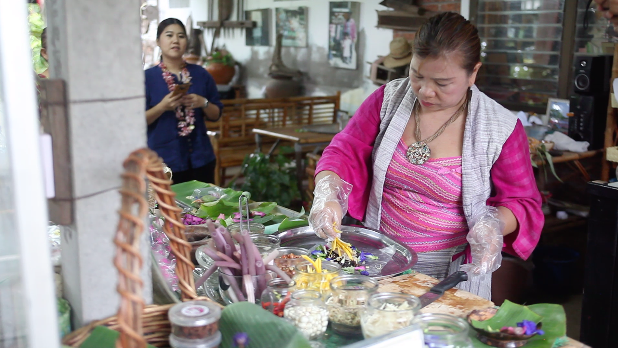 ທ່າມກາງອາກາດແດດກ້າໃນຕອນບ່າຍຂອງລະດູຮ້ອນ, ໝູ່ບ້ານ ຊຽງແຫວ ພັດປະກົດມີລົມພັດຂຽວເຢັນສະບາຍ ແລະ ສະຫງົບງຽບ. ບ້ານ ຊຽງແຫວ ມີປະມານ 900 ຄອບຄົວ ແລະ ທຸກໆຄອບຄົວລ້ວນແຕ່ລົງທະບຽນເຂົ້າຮ່ວມການເຮັດການທ່ອງທ່ຽວແບບ homestay. ເອື້ອຍ ອວງທອງ ຫົວໜ້າສະມາຄົມ homestay ຂອງ ບ້ານ ຊຽງແຫວ ໃນຊຸດສິ້ນໄໝທີ່ເປັນມູນເຊື້ອຂອງຕົນ ໄດ້ຍິ້ມແຍ້ມແຈ່ມໃສອອກມາຮັບພວກຂ້າພະເຈົ້າ ແລ້ວຕ້ອງພວງມາໄລທີ່ໄດ້ຮ້ອຍດ້ວຍດອກໄມ້ສົດອັນຫອມຫວນໃສ່ຄໍພວກຂ້າພະເຈົ້າ. ເຮືອນຂອງເອື້ອຍ ອວງທອງ ແມ່ນມີຈຸດພິເສດສະເພາະ, ຢູ່ນອກປະຕູໂຂງ ໄດ້ຕິດປ້າຍທີ່ເຮັດດ້ວຍໄມ້ແຜ່ນໃຫຍ່ ເຊິ່ງໄດ້ຂຽນຊື່ຂອງສະມາຄົມ ແລະ ບັນດາຂໍ້ມູນຕົ້ນຕໍ ເພື່ອຕິດຕໍ່, ຢູ່ທາງຂ້າງ ກໍມີແຜ່ນໄມ້ແຜ່ນໜຶ່ງ ທີ່ໄດ້ຂຽນຊື່ບັນດາສະຖານທີ່ທ່ອງທ່ຽວທີ່ລືຊືໃນເຂດຄື ບຶງດອກບົວທອງ ລຽບຕາມສອງເບື້ອງຂອງທາງເຂົ້າໄປໃນເຮືອນທີ່ໄດ້ມຸງດ້ວຍຫຍ້ານັ້ນ ແມ່ນເຂດວາງສະແດງບັນດາຜະລິດຕະພັນທີ່ເຮັດຈາກດອກບົວທອງ; ບັນດາຜະລິດຕະພັນພື້ນເມືອງຄື ກວ້ຍ, ໝາກມ່ວງ, ໝາກນັດ.... ນອກຈາກນັ້ນ ຍັງມີແຖວໂຕະຍາວເພື່ອຕ້ອນຮັບແຂກທ່ອງທ່ຽວ. ນະທີ່ນີ້, ຄະນະນັກຂ່າວພວກຂ້າພະເຈົ້າ ໄດ້ຊີມເຄື່ອງດື່ມ ແລະ ບັນດາເຍື່ອງອາຫານຕ່າງໆ ໂດຍໄດ້ເຮັດຈາກວັດຖຸດິບຕົ້ນຕໍແມ່ນດອກບົວທອງຄື ແກງດອກບົວທອງ, ຍຳດອກບົວທອງ... ເຊິ່ງເປັນຈຸດທີ່ເປັນເອກະລັກສະເພາະຈາກສີມືອັນຄ່ອງແຄ້ວຂອງປະຊາຊົນຢູ່ທີ່ນີ້ເຮັດເອງ ເພື່ອດຶງດູດແຂກທ່ອງທ່ຽວ.