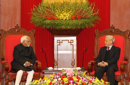 ![]() ທ່ານເລຂາທິການໃຫຍ່ ຫງວຽນຟູຈ້ອງ ຕ້ອນຮັບທ່ານຮອງປະທານາທິບໍດີ ອິນເດຍ Momamad Hamed Ansari