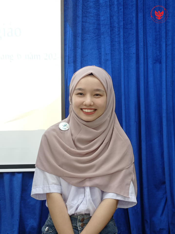 ໂດຍໄດ້ສຳຜັດຕົວຈິງການພັນຜ້າປົກຫົວ Hijab ພາຍໃຕ້ການແນະນຳຂອງແຂກຖືກເຊີນຊາວ ອິນໂດເນເຊຍ, ບັນດານັກສຶກສາມະຫາວິທະຍາໄລເປີດ ນະຄອນ ໂຮ່ຈີມິນ ໄດ້ເວົ້າຄວາມໃນໃຈສູ່ຟັງວ່າ: