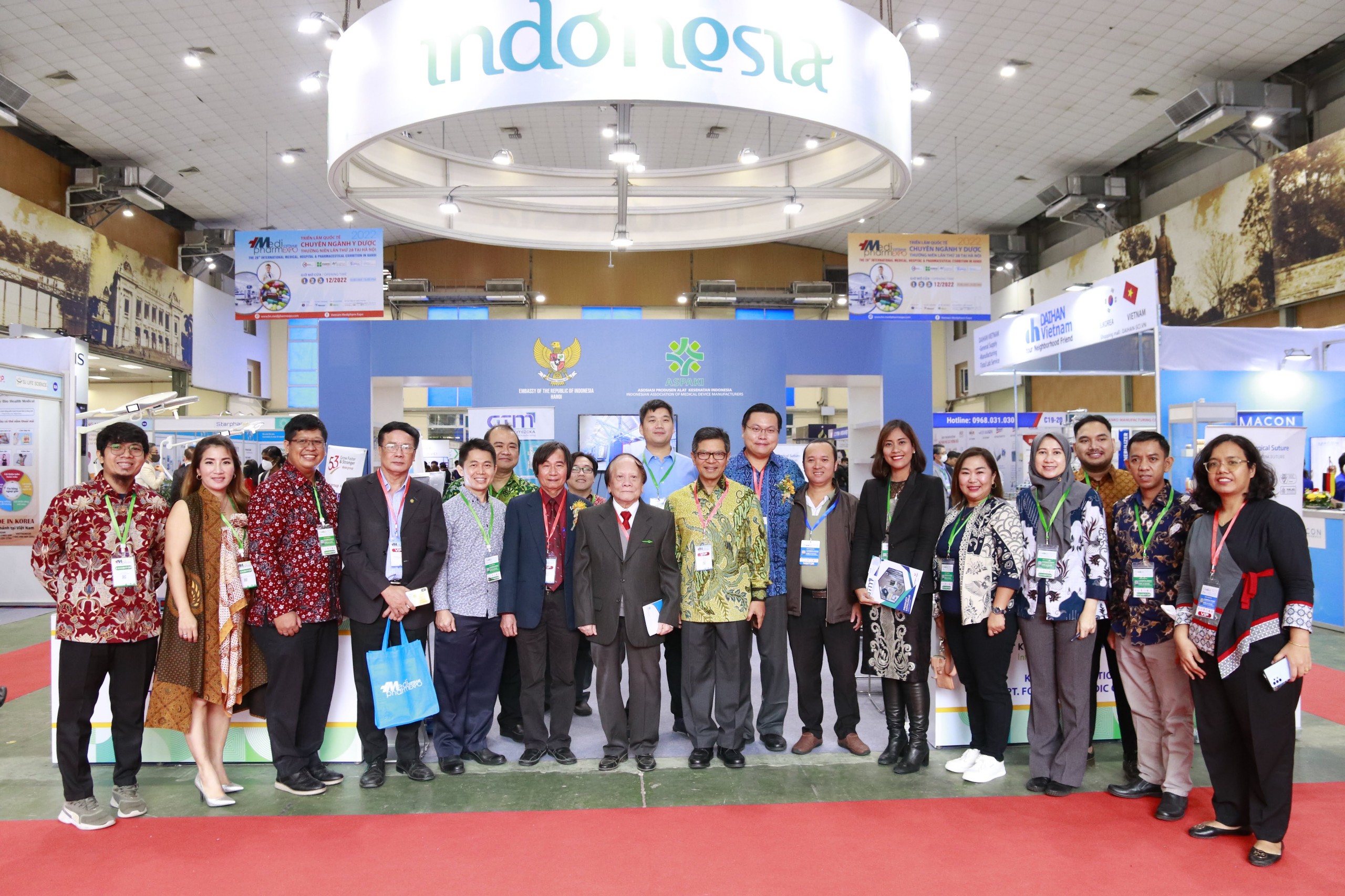 ທ່ານເອກອັກຄະລັດຖະທູດ Denny Abdi ຖ່າຍຮູບນຳກັນກັບບັນດາຜູ້ຕາງໜ້າບໍລິສັດການຢາ ອິນໂດເນເຊຍ ຢູ່ງານວາງສະແດງສາກົນສະເພາະກິດການຢາ 2022 ຢູ່ຮ່າໂນ້ຍ |