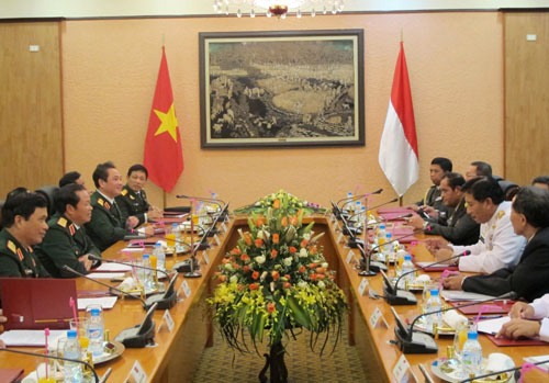 ດ້ວຍຈຸດໝາຍລວມນັ້ນ, ຫວຽດນາມ ແລະ ອິນໂດເນເຊຍ ເປັນເອກະພາບສືບຕໍ່ປະຕິບັດຂໍ້ຕົກລົງຮ່ວມມືປ້ອງກັນ ແລະ ຕໍ່ສູ້ຕ້ານອາດຊະຍາກຳ (2005), ບົດບັນທຶກຊ່ວຍຈຳກ່ຽວກັບການເພີ່ມທະວີການຮ່ວມມືລະຫວ່າງບັນດາເຈົ້າຫນ້າທີ່ປ້ອງກັນຊາດ ແລະ ບັນດາການເຄື່ອນໄຫວກ່ຽວຂ້ອງ (2010) ແລະຫນັງສືທາບທາມຄວາມເຫັນກ່ຽວກັບການສ້າງຕັ້ງກົນໄກເຈລະຈາລະຫວ່າງ ກອງທັບເຮືອສອງປະເທດ (2012). ເພື່ອປະຕິບັດບັນດາເອກະສານນີ້ໃຫ້ປະກົດຜົນເປັນຈິງ, ຫວຽດນາມ ໄດ້ສົ່ງຄະນະຜູ້ແທນການທະຫານຂັ້ນສູງຫລາຍຄະນະໄປອິນໂດເນເຊຍ ເພື່ອພົບປະ ແລະ ປຶກສາຫາລືກັບບັນດາເຈົ້າຫນ້າທີ່ປ້ອງກັນປະເທດ ອິນໂດເນເຊຍ. ພັນເອກ Susilo Adi Purwantoto, ຫົວຫນ້າ ທູດທະຫານ ອິນໂດເນເຊຍ ປະຈຳຫວຽດນາມ ໃຫ້ຮູ້ວ່າ: