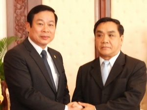 (vovworld)- ໃນຂອບເຂດການຢ້ຽມຢາມ ແລະ ເຮັດວຽກຢູ່ ສປປ ລາວ ແຕ່ວັນທີ 10 -11/4, ຕອນບ່າຍວັນທີ 11/4 ຢູ່ ນະຄອນຫລວງ ວຽງຈັນ, ຄະນະຜູ້ແທນຂັ້ນສູງກະຊວງຖະແຫລງຂ່າວ ແລະ ສື່ສານ ຫວຽດນາມ ໂດຍທ່ານ Nguyen Bac Son ລັດຖະມົນຕີກະຊວງດັ່ງກ່າວນຳຫນ້າ ໄດ້ເຂົ້າຢ້ຽມຂຳ່ນັບທ່ານນາຍົກລັດຖະມົນຕີ ລາວ ທອງສິງ ທຳມະວົງ. ທ່ານລັດຖະມົນຕີ ກະຊວງຖະແຫລງຂ່າວ ແລະ ສື່ສານ ຫວຽດນາມ Nguyen Bac Son ໄດ້ລາຍງານກ່ຽວກັບເລື່ອງຄະນະຜູ້ແທນຫວຽດນາມ ໄດ້ສົມທົບກັບກະຊວງຖະແຫລງຂ່າວ ວັດທະນະທຳ ແລະ ທ່ອງທ່ຽວ ລາວ ຈັດຕັ້ງ ງານວາງສະແດງສື່ ສິ່ງພິມລະດູບານໃຫມ່ແຫ່ງຄວາມສາມັກຄີມິດຕະພາບ ຫວຽດນາມ - ລາວ ປະສົບຜົນສຳເລັດ ເພື່ອຂຳ່ນັບຮັບຕ້ອນ 50 ປີ ແຫ່ງວັນສ້າງສາຍພົວພັນທາງການທູດ ຫວຽດນາມ ແລະ ລາວ (1962 - 2012), 35 ປີ ແຫ່ງວັນລົງນາມໃນສົນທິສັນຍາມິດຕະພາບ, ການຮ່ວມມື (1977-2012) ລະຫວ່າງ ຫວຽດນາມ - ລາວ ທ່ານນາຍົກ