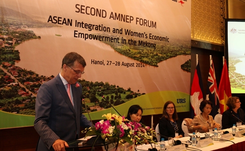 ທີ່ເວທີປາໄສດ້ວຍຫົວຂໍ້ທີ່ວ່າ : “ເຊື່ອມໂຍງເຂົ້າກັບ ASEAN ແລະມອບສິດເສດຖະກິດໃຫ້ແມ່ຍິງໃນພາກພື້ນແມ່ນ້ຳຂອງ” ໂດຍລັດຖະບານອົດສະຕາລີຈັດຕັ້ງຫາກໍ່ດຳເນີນຢູ່ຮ່າໂນ້ຍ, ບັນດາຜູ້ແທນ ຢັ້ງຢືນວ່າ : ການເຊື່ອມໂຍງເຂົ້າກັບ ASEAN ອາດສາມາດແມ່ນກຳລັງກະຕຸກຊຸກຍູ້ທີ່ແຂງແຮງໃຫ້ແກ່ວິວັດການເຂົ້າຮ່ວມພັດທະນາເສດຖະກິດຂອງແມ່ຍິງ. ທ່ານ Hugh Borrowman, ເອກອັກຄະລັດຖະທູດອົດສະຕາລີປະຈຳຫວຽດນາມ ໃຫ້ຮູ້ວ່າ :