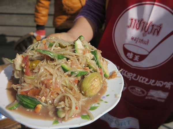 “ເມື່ອເຂົ້າຮ້ານອາຫານຢູ່ແຄມທາງ, ນ້ອງສັ່ງເຍື່ອງອາຫານຕຳໝາກຮຸ່ງ ແຕ່ເພັດໂພດ ກິນບໍ່ໄດ້, ເຈົ້າຂອງຮ້ານໄດ້ປ່ຽນເຍື່ອງອານຫານອື່ນໃຫ້ພວກນ້ອງແຕ່ບໍ່ເກັບຄ່າ.”