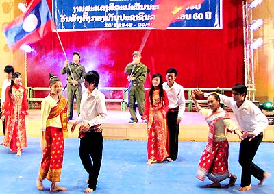 ![]() ນັກສຶກສາຫວຽດນາມຢູ່ລາວ ແລະ ນັກສຶກສາລາວ ພ້ອມກັນເຂົ້າຮ່ວມລາຍການສະແດງສິລະປະ