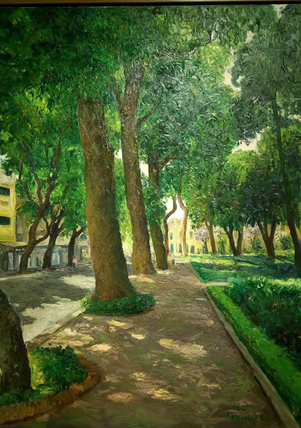 ເບິ່ງຕົ້ນໄມ້ໃຫຍ່ເຫລົ່ານີ້ ແນ່ນອນວ່າ ແມ່ນຢູ່ ໜອງຮ່ວານກຽມ ແລ້ວ. ນ້ອງເຫັນໄດ້ທິວທັດທຳມະຊາດທີ່ລຶ້ງເຄີຍ. ນ້ອງຮູ້ສຶກໄດ້ເຖິງພະລັງຊີວິດຂອງຕົ້ນໄມ້, ແສງແດດ. ຕ້ອງເວົ້າວ່າ ຈິດຕະກອນຄົນນີ້ ໃຊ້ສີສຸດທີ່ງ່າຍດາຍ, ແຕ່ພັດພັນລະນາໄດ້ເຖິງບັນຍາກາດໃນຮູບແຕ້ມ. ມັນເຮັດໃຫ້ຄົນເຮົາຮູ້ສຶກໄດ້ເຖິງຄວາມອົບອຸ່ນ, ຜາສຸກ.