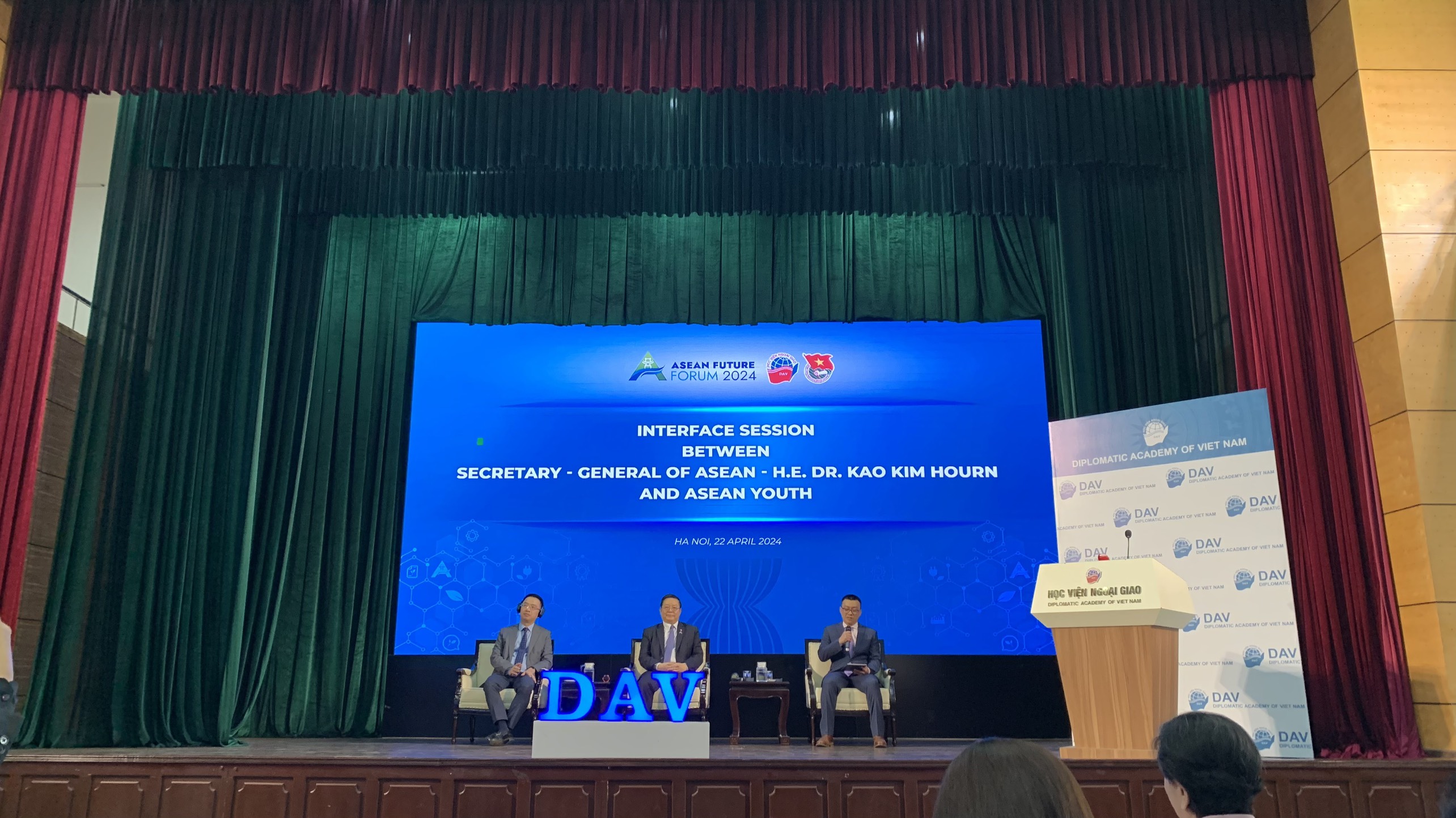 ນີ້ແມ່ນການໂອ້ລົມສົນທະນາທີ່ມີປະສິດທິຜົນ ແລະ ເປັນປະໂຫຍດທີ່ສຸດ ສຳລັບຊາວໜຸ່ມສະຖາບັນການຕ່າງປະເທດ ເວົ້າສະເພາະ ແລະ ຊາວໜຸ່ມ ອາຊຽນ ເວົ້າລວມ. ນັ້ນແມ່ນເປົ້າໝາຍຂອງການໂອ້ລົມສົນທະນາມື້ນີ້. ນັ້ນແມ່ນແນະນຳບັນດາຊາວໜຸ່ມຈະຮູ້ຈັກເຖິງເປົ້າໝາຍໃນການສ້າງອາຊຽນ ພັດທະນາຢ່າງເຂັ້ມແຂງ, ມີສະຖຽນລະພາບ, ເພື່ອອາຊຽນ, ເພື່ອປະຊາຊົນ ອາຊຽນ ແລະ ເພື່ອໃຈກາງອາຊຽນ.