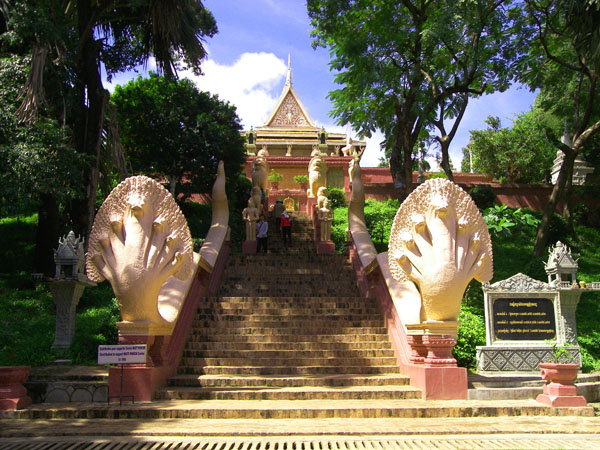 ຈາກສະຫນາມບິນ ສາກົນ Pechentong, ໄປຕາມທິດເຫນືອປະມານ 10 ກິໂລແມັດແມ່ນຈະຮອດວັດພະນົມ. ວັດຕັ້ງຢູ່ຖະຫນົນ Norodom, ໃຈກາງນະຄອນ ພະນົມເປັນ ຊື່ງແມ່ນຫນຶ່ງໃນບັນດາວັດທີ່ມີປະຫວັດຄວາມເປັນມາແຕ່ດົນນານ ແລ້ວ . ຖ້າສັງເກດຈາກທາງໄກ, ວັດແຫ່ງນີ້ຖືກຕັ້ງຢູ່ເທິງພູ ມີຄວາມສູງ 27 ແມັດ ແລະ ຖືກປົກຄຸມດ້ວຍສີຂຽວຂອງຕົ້ນໄມ້. ຢູ່ປະຕູເຂົ້າວັດ ທ່ານຈະພົບເຫັນທາດໃຫຍ່ກວ່າໝູ່ໃນວັດ ນັ້ນແມ່ນ ທາດເຈົ້າຊີວິດ Ponhea ຊື່ງແມ່ນຜູ້ຍົກຍ້າຍເມືອງຫລວງຂອງລະບອບ ຂະແມ ຈາກອັງກໍມາພະນົມເປັນເມື່ອປີ 1422. ອ້າຍ Rithy Bora, ຜູ້ຄຸ້ມຄອງວັດ ໃຫ້ຮູ້ວ່າ: ວັດແຫ່ງນີ້ໄດ້ຮັບການກໍ່ສ້າງເມື່ອປີ 1372.